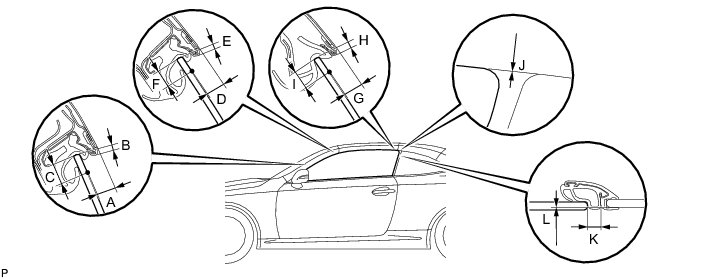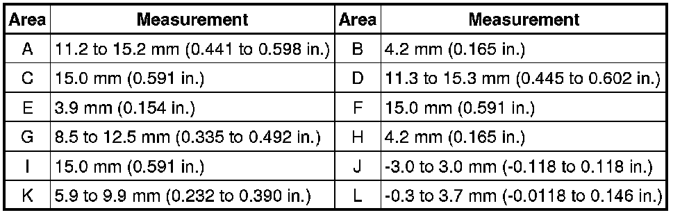 (e) Check that the clearance measurements of areas A through L are within each standard range.