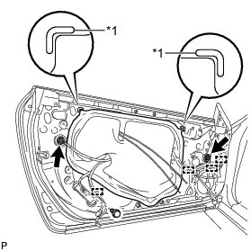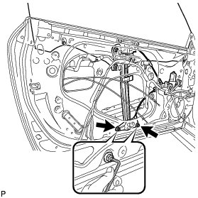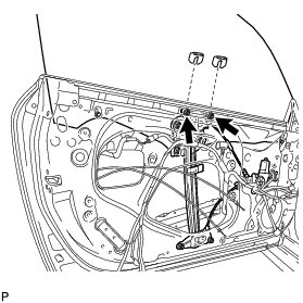 (1) Loosen the 2 nuts at the bottom of the front door window regulator assembly.