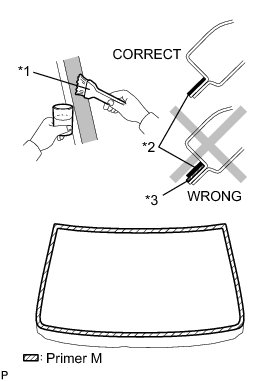 (a) Using a brush or sponge, coat the application area of the No. 2 windshield glass stoppers with Primer G.