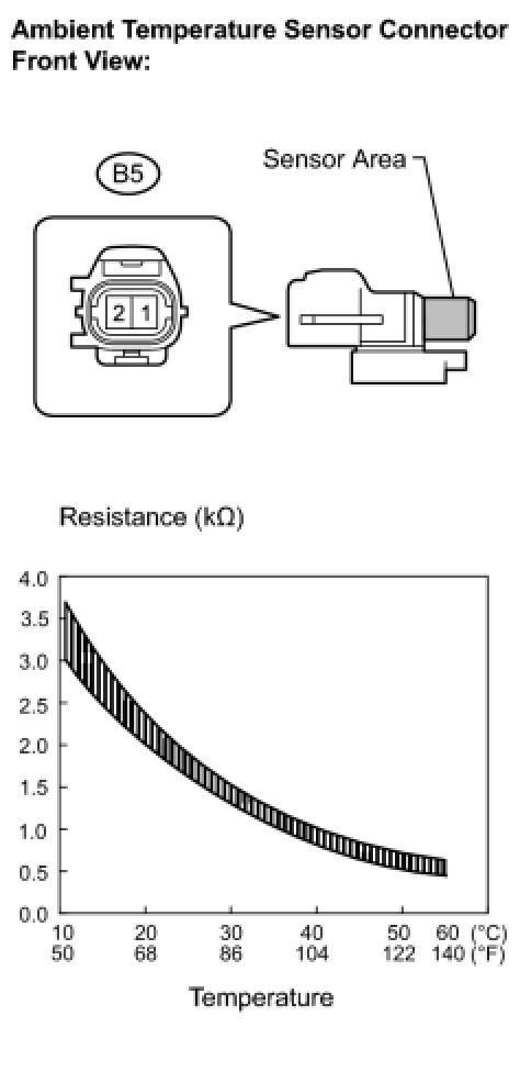 If the resistance is not as specified, replace the ambient temperature sensor.