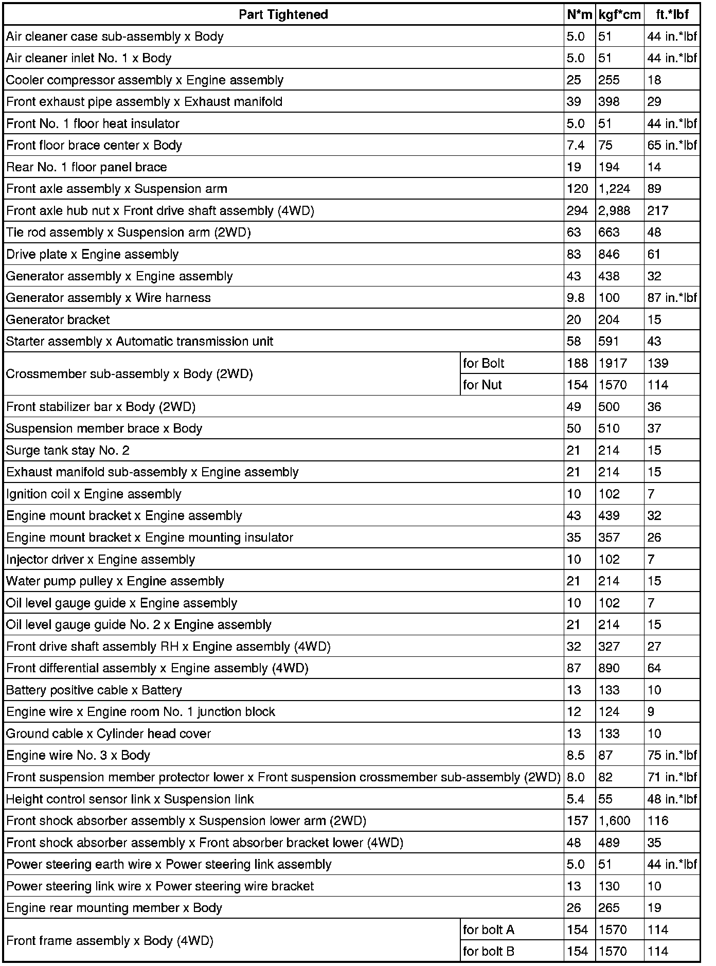 Torque Specifications