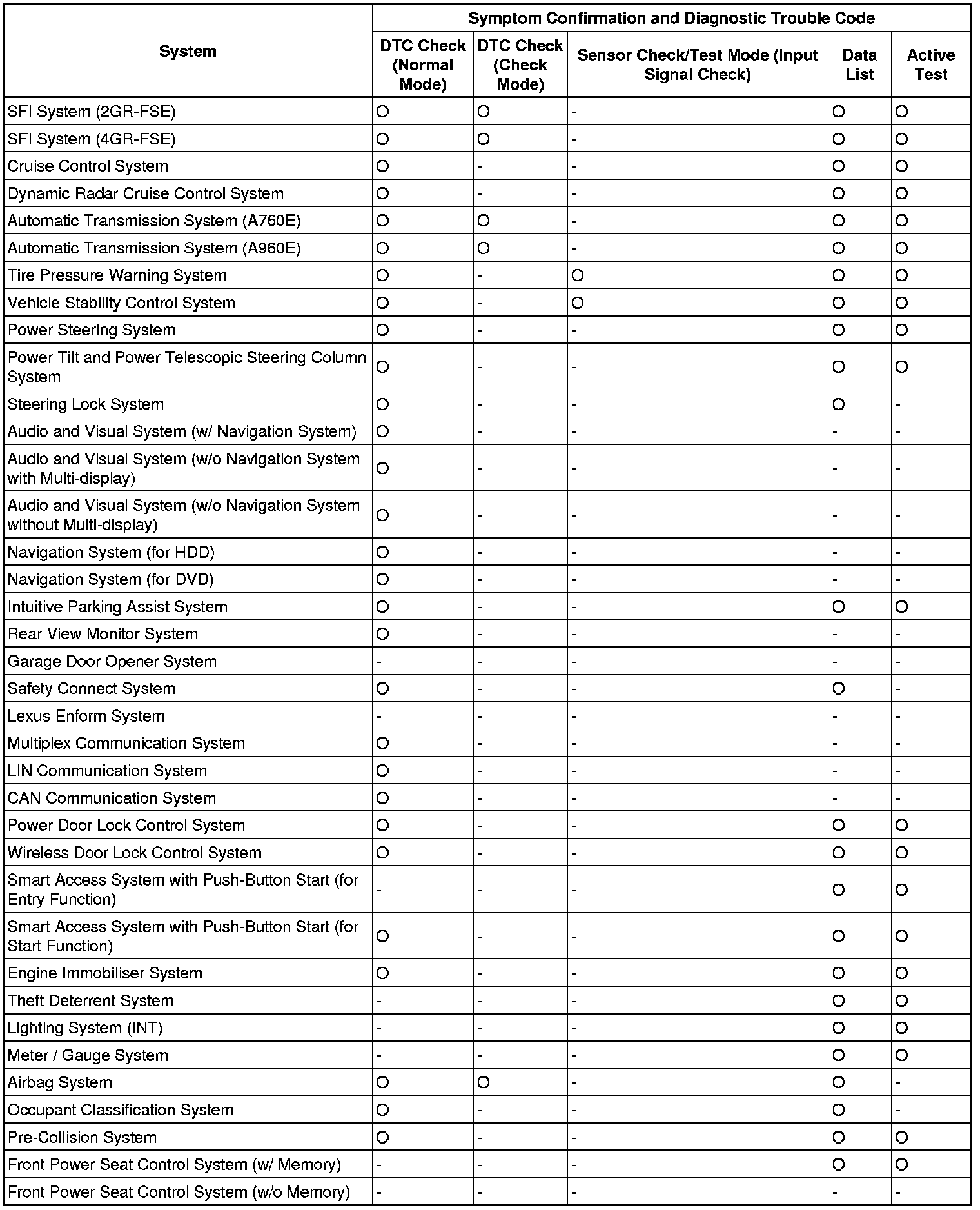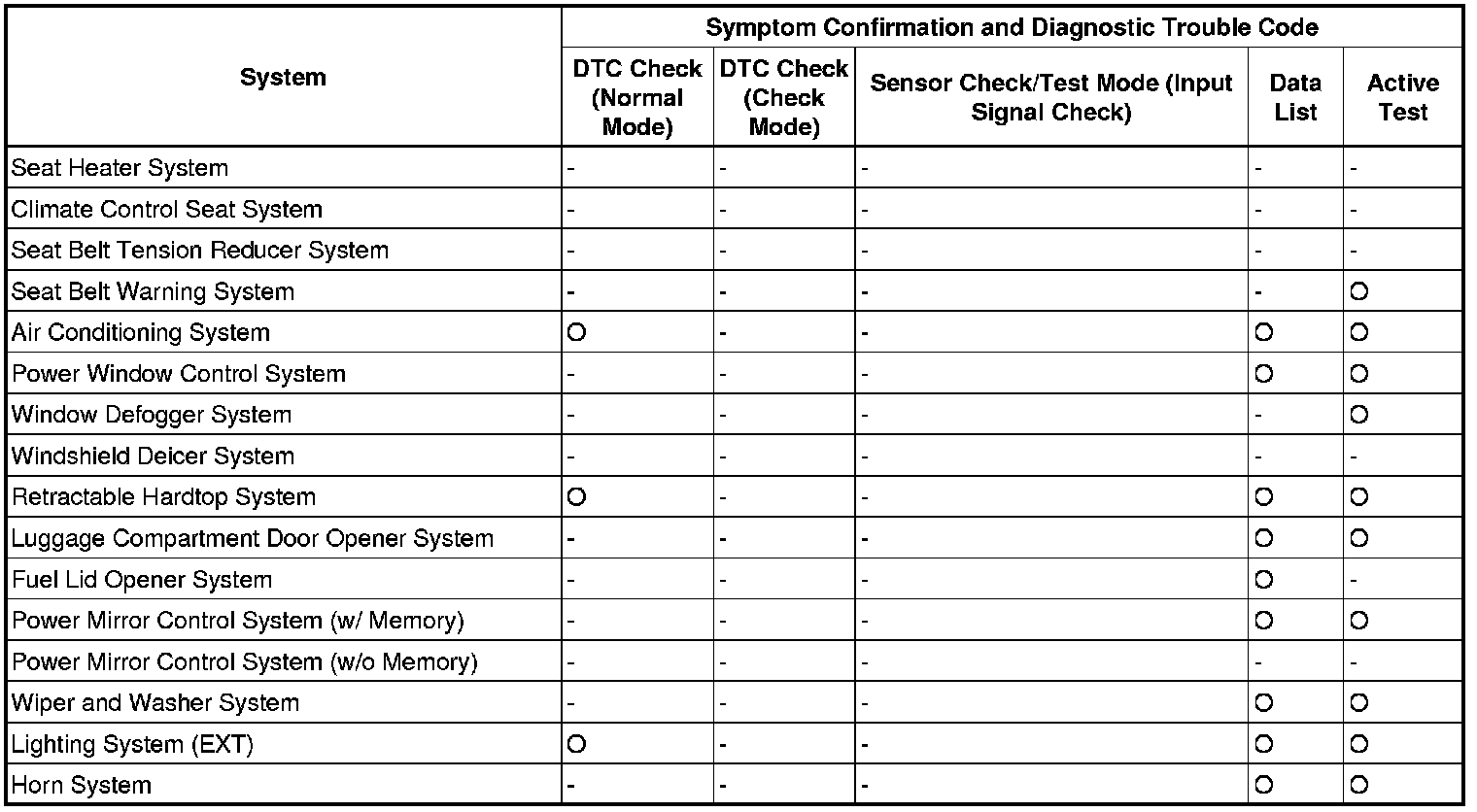 By using these functions, the problem areas can be narrowed down and troubleshooting can be more effective. Diagnostic functions are incorporated in the following systems of this vehicle.