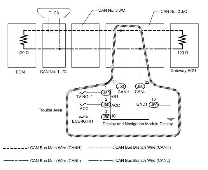 NG -- REPAIR OR REPLACE CAN BUS BRANCH WIRE OR CONNECTOR (DISPLAY AND NAVIGATION MODULE DISPLAY BRANCH WIRE)