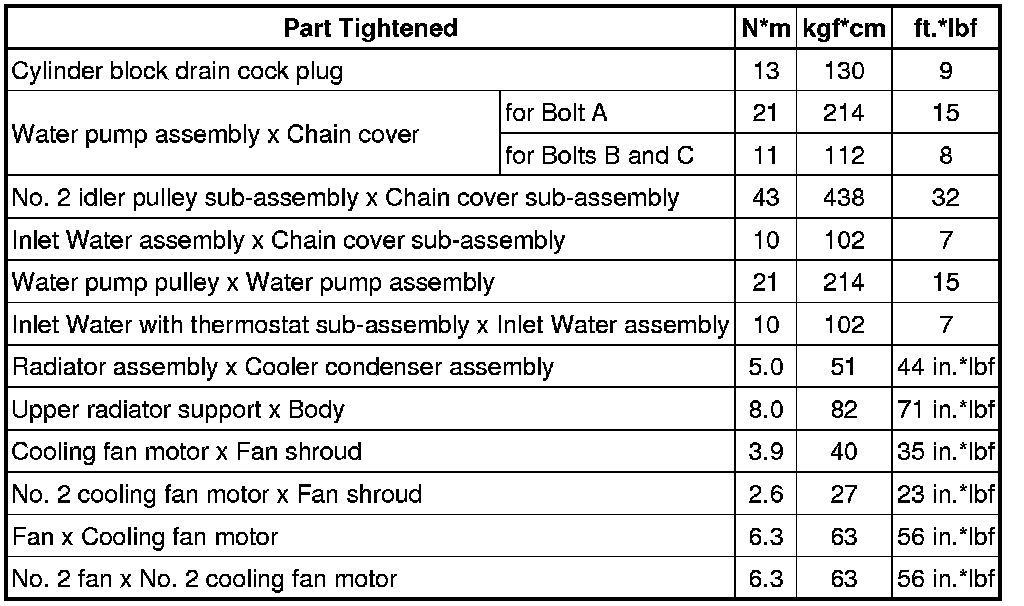 SPECIFICATIONS: 2GR-FSE COOLING: TORQUE SPECIFICATIONS