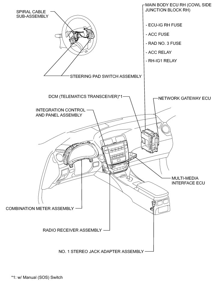 AUDIO / VIDEO: AUDIO AND VISUAL SYSTEM (w/o Navigation System without Multi-display): PARTS LOCATION