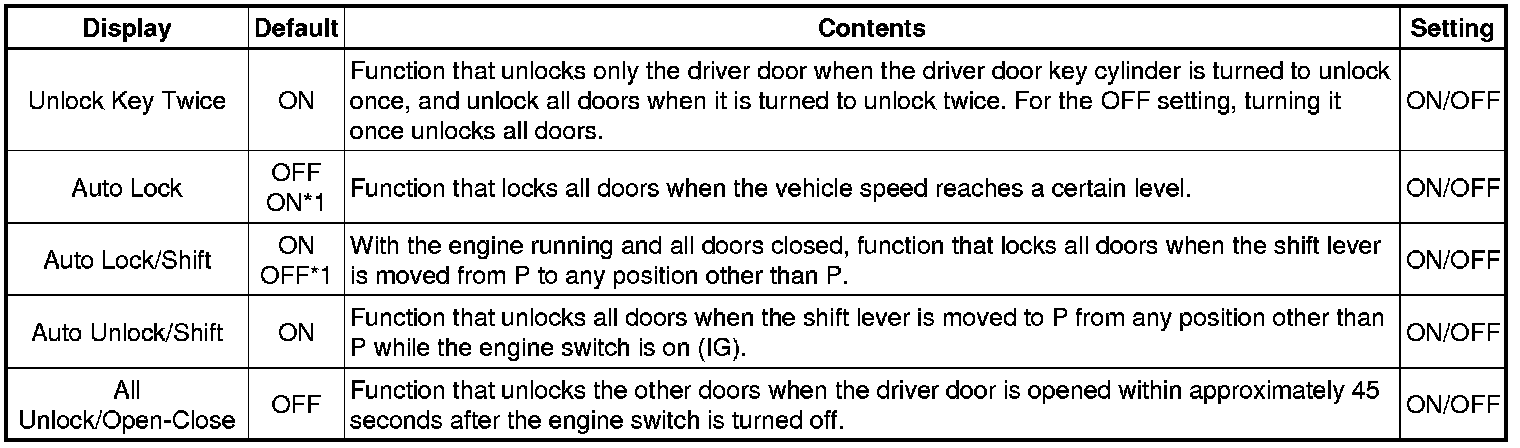 DOOR LOCK: POWER DOOR LOCK CONTROL SYSTEM: CUSTOMIZE PARAMETERS