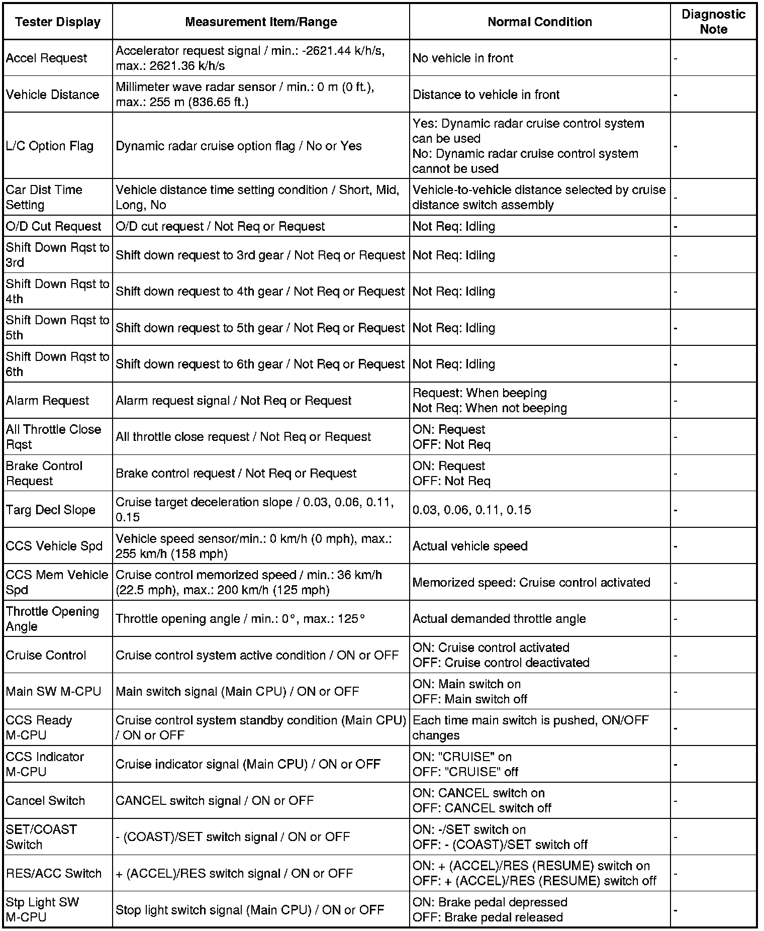 CRUISE CONTROL: DYNAMIC RADAR CRUISE CONTROL SYSTEM: DATA LIST / ACTIVE TEST