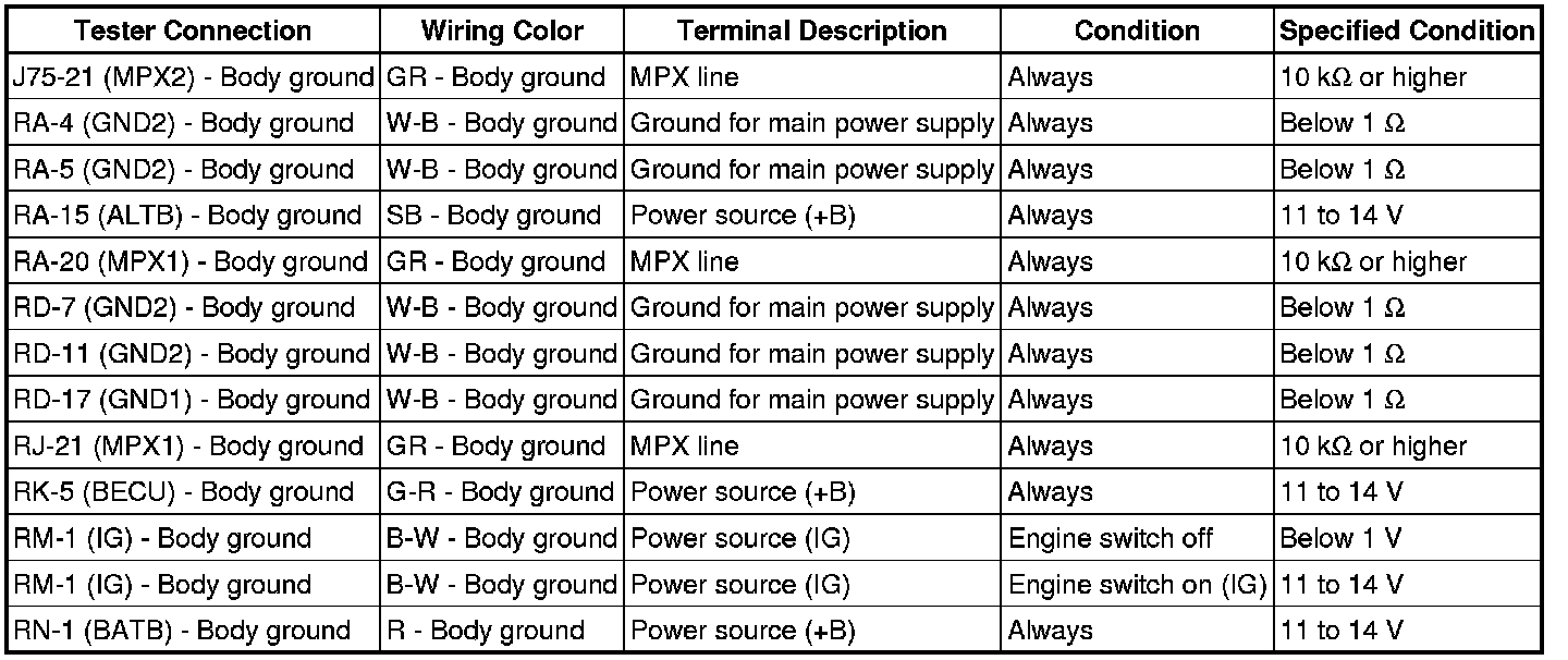 3. CHECK MAIN BODY ECU RH (COWL SIDE JUNCTION BLOCK RH)