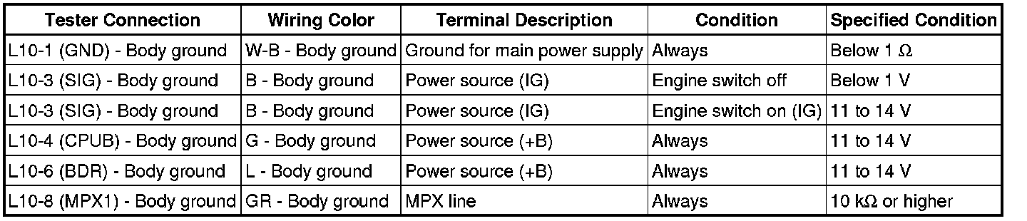 10. CHECK OUTER MIRROR CONTROL ECU RH