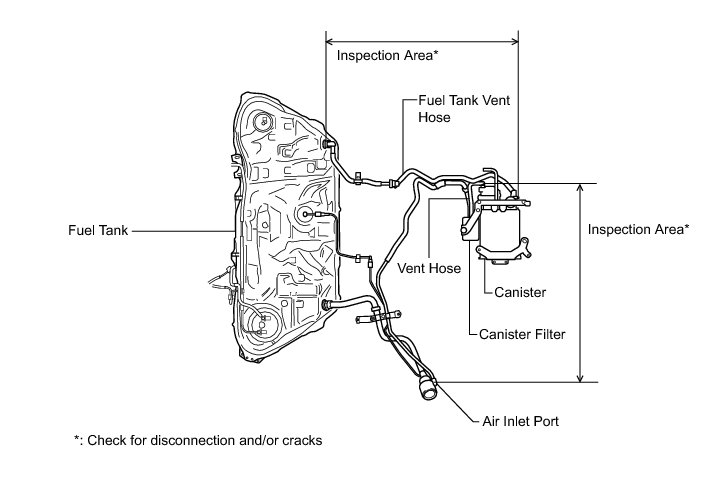 * When replacing the canister, check the canister pump module interior and related pipes for water, fuel and other liquids. If liquids are present, check for disconnections and/or cracks in the following: 1) the pipe from the air inlet port to the canister pump module; 2) the canister filter; and 3) the fuel tank vent hose.