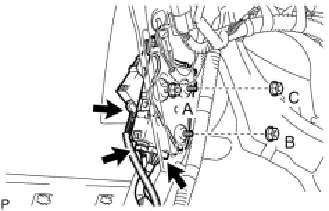 (c) Insert temporarily tightened nut A into the hole on the vehicle body (left side of the luggage compartment).