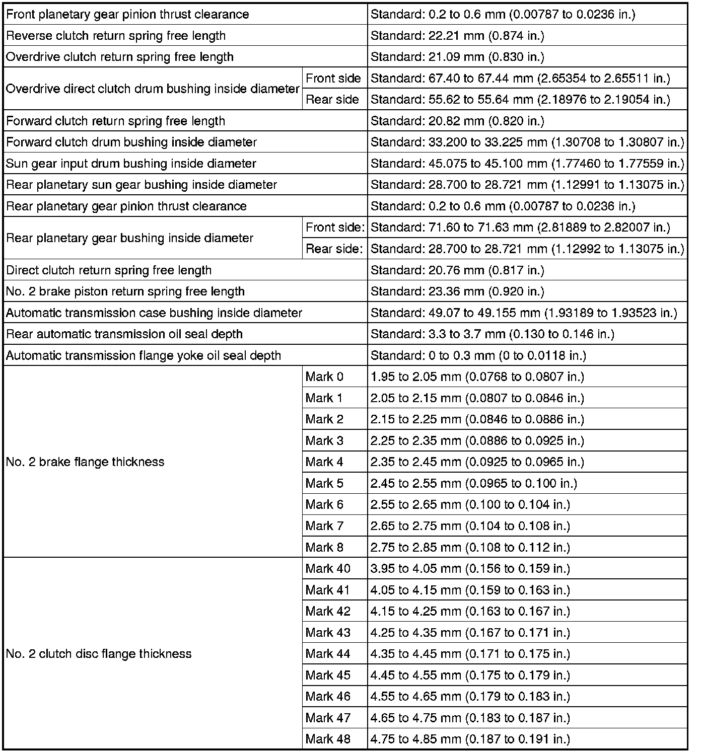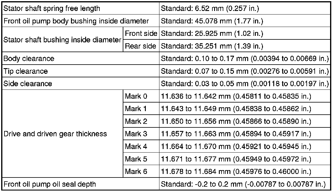 SPECIFICATIONS: AA80E AUTOMATIC TRANSMISSION / TRANSAXLE: SERVICE DATA