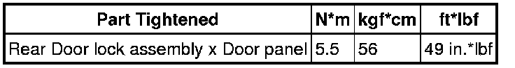 SPECIFICATIONS: DOOR LOCK: TORQUE SPECIFICATIONS