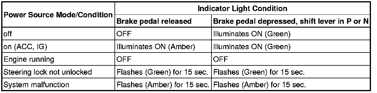 Engine Switch Indicator Light Condition