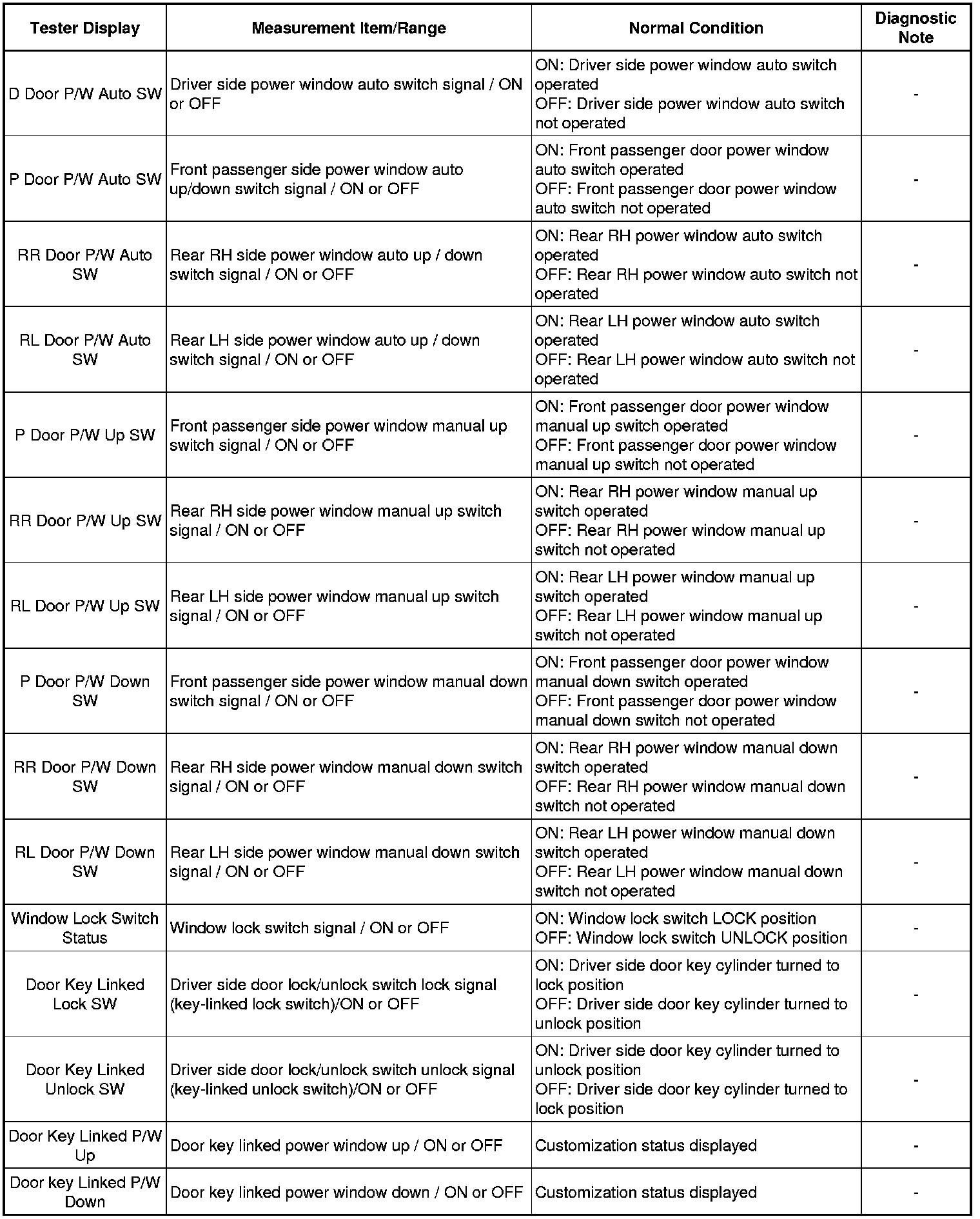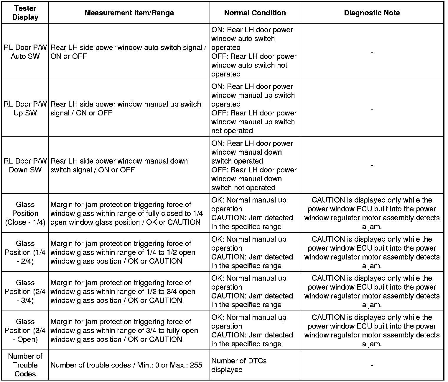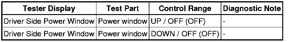 WINDOW / GLASS: POWER WINDOW CONTROL SYSTEM: DATA LIST / ACTIVE TEST