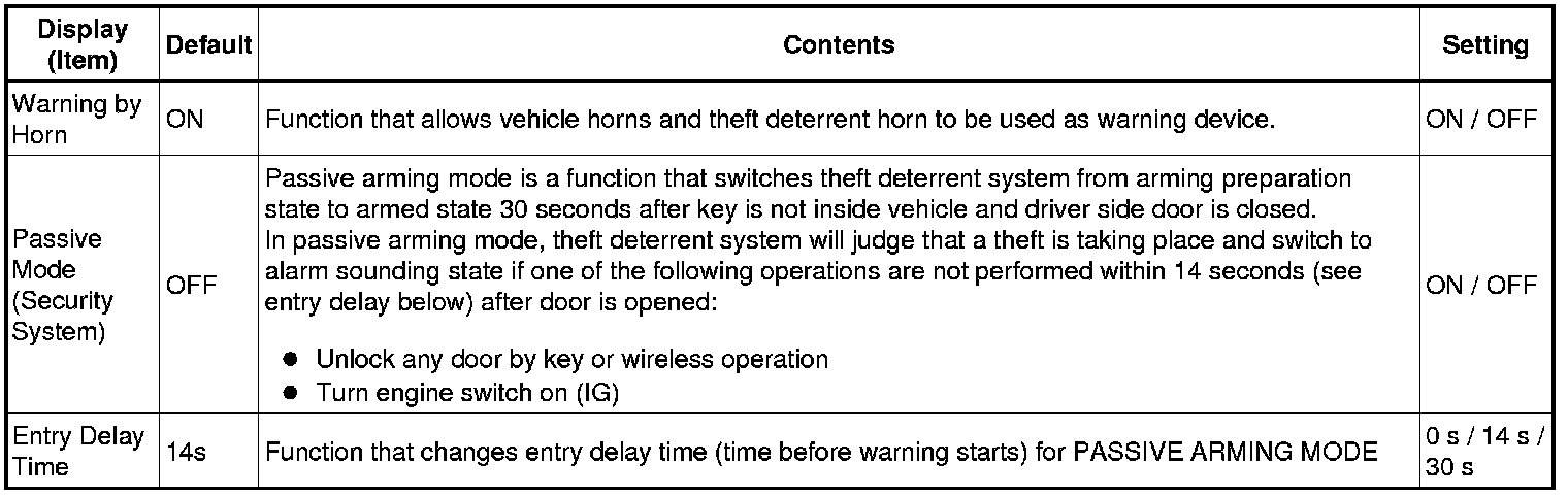 THEFT DETERRENT: THEFT DETERRENT SYSTEM: CUSTOMIZE PARAMETERS