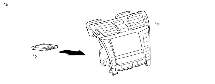If the temperature of the display and navigation module display changes rapidly, condensation may occur inside the unit. This may cause a malfunction of the HDD. Therefore, when the display and navigation module display is removed from the instrument panel, it needs to be kept inside the vehicle or in an environment with an equivalent temperature and humidity.