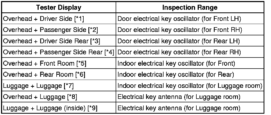 * *3: Perform the same inspection above for the door electrical key oscillator (rear left seat outside transmitter).