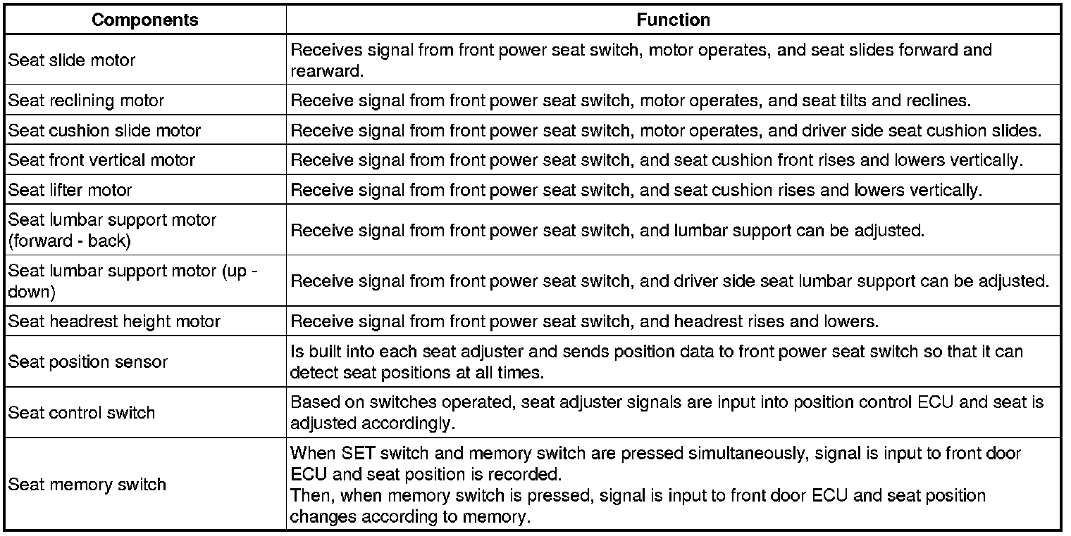 SEAT: FRONT POWER SEAT CONTROL SYSTEM: SYSTEM DESCRIPTION