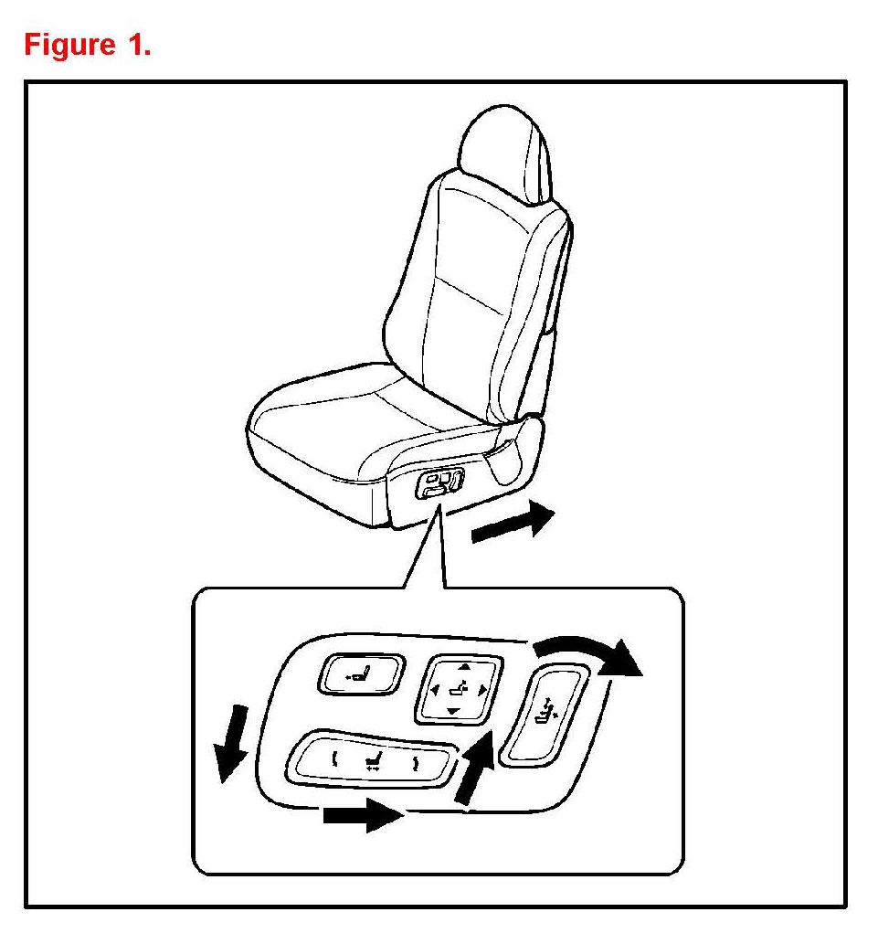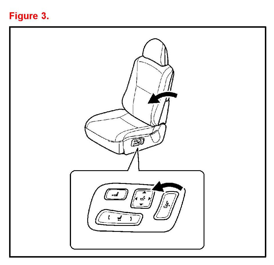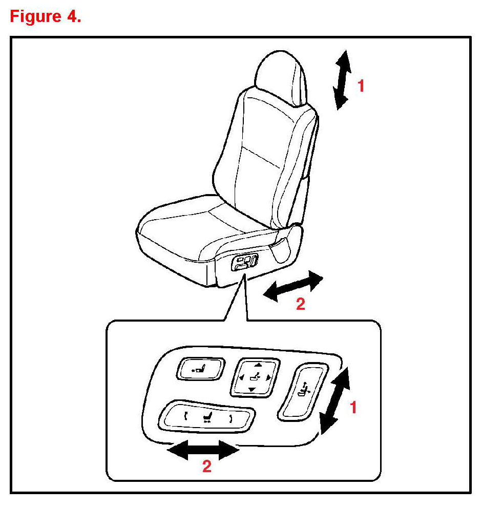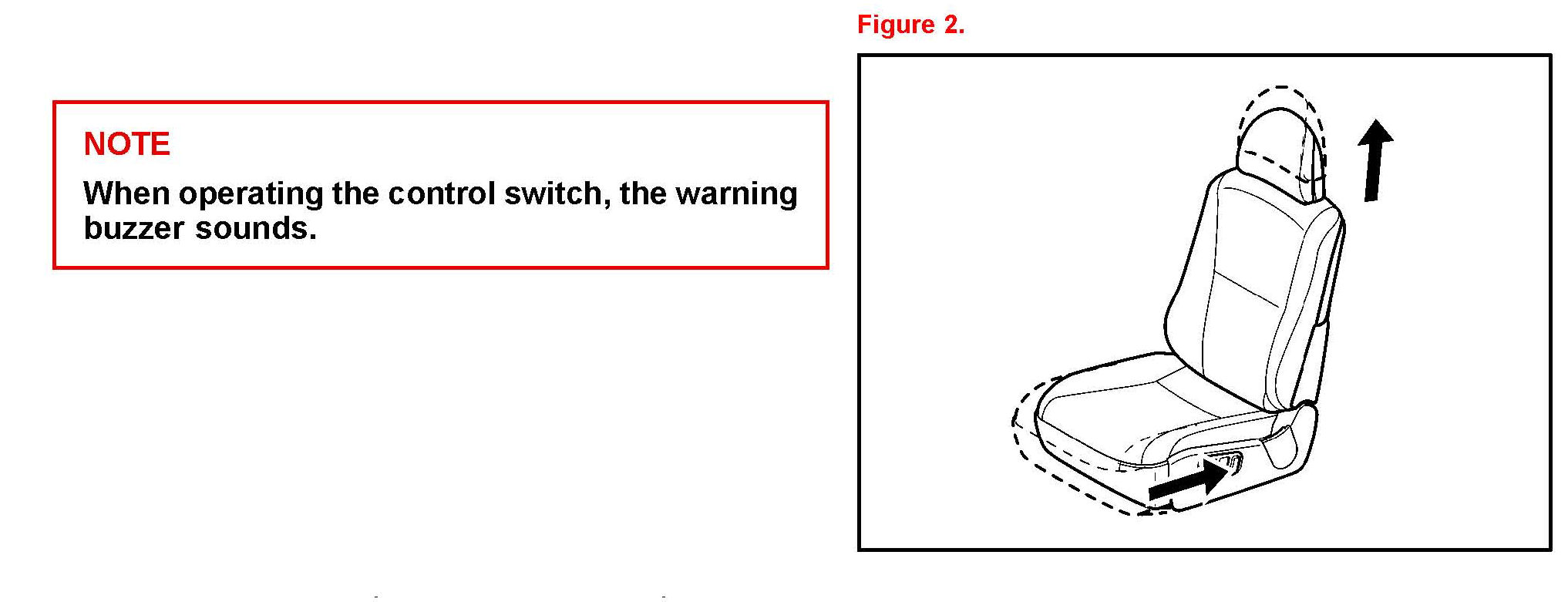 7. Operate the seat position control switch and check that the seat slides forward and rearward and that the beep is NOT heard. (Refer to 2 in Figure 4.)
