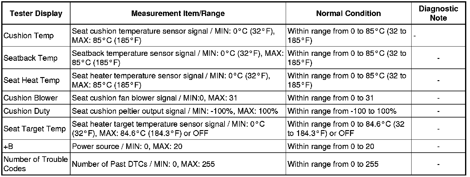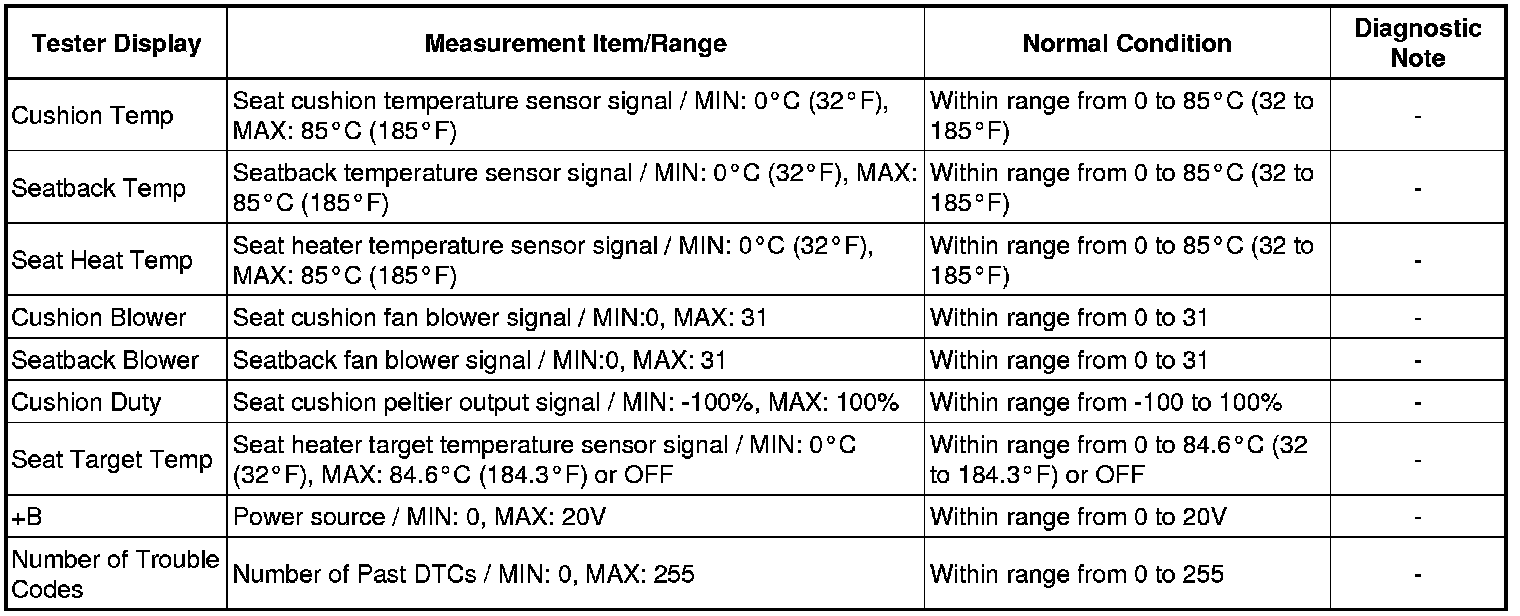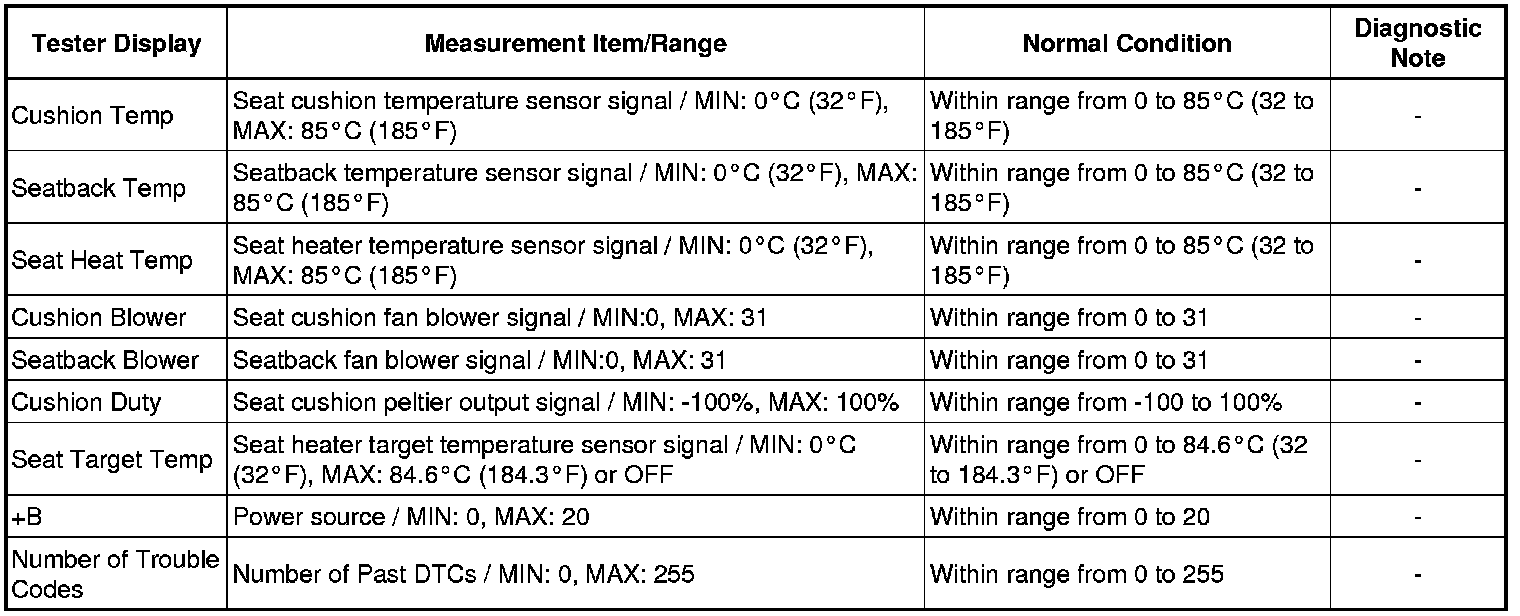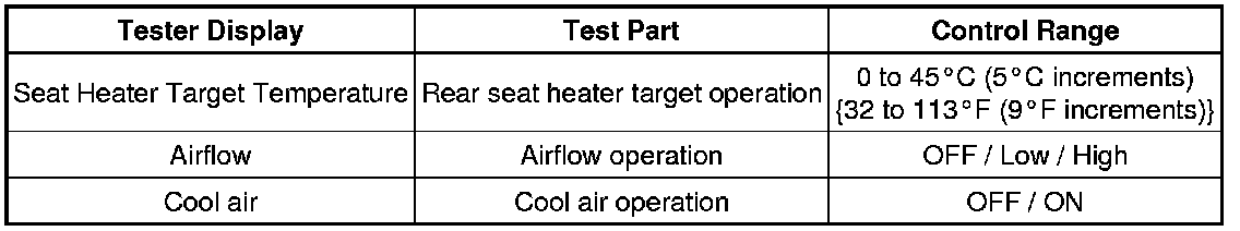 SEAT: CLIMATE CONTROL SEAT SYSTEM: DATA LIST / ACTIVE TEST