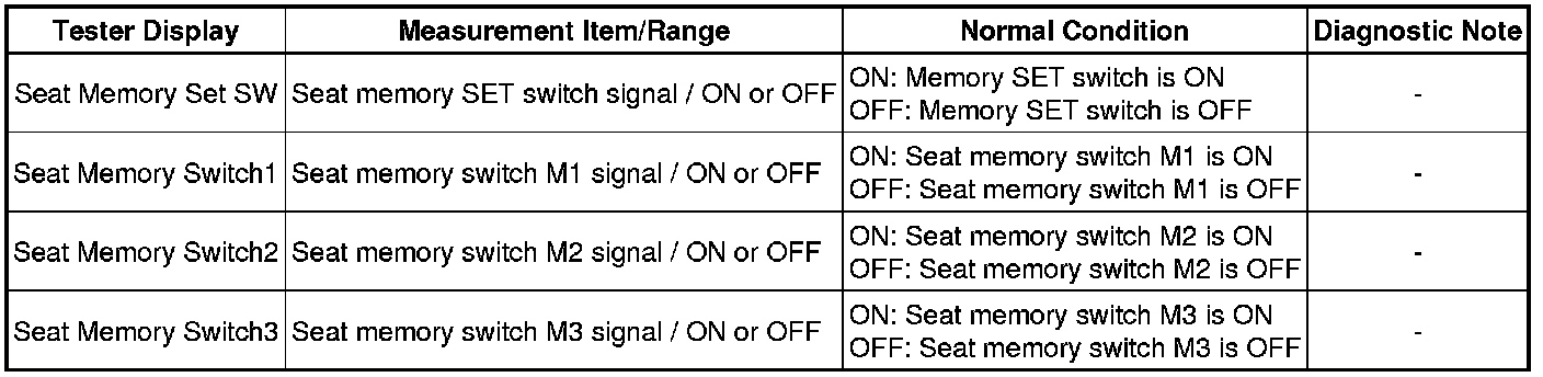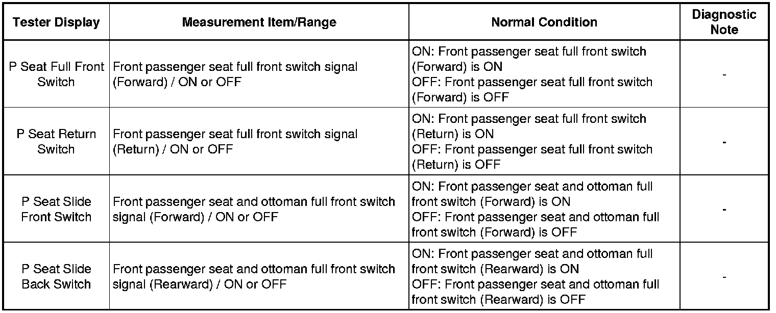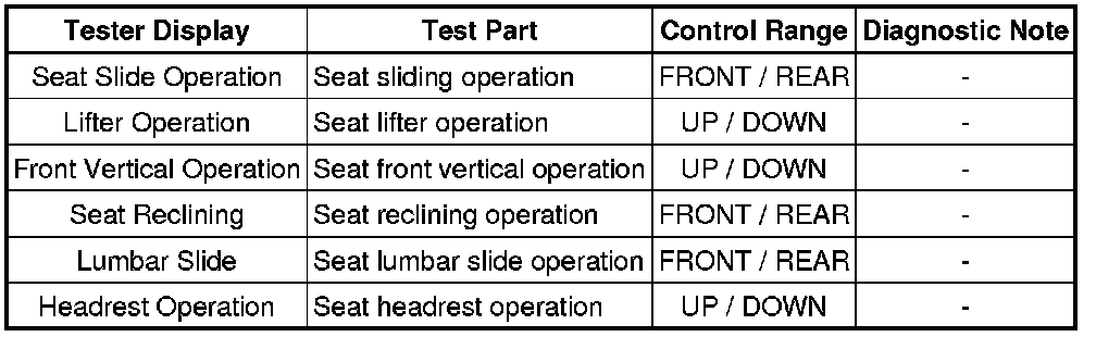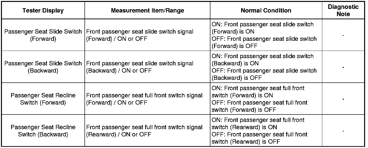 SEAT: FRONT POWER SEAT CONTROL SYSTEM: DATA LIST / ACTIVE TEST