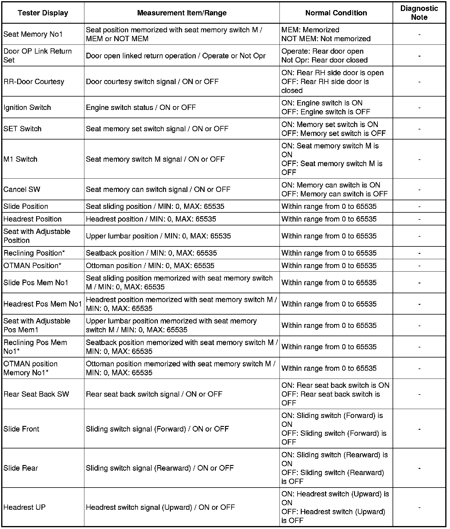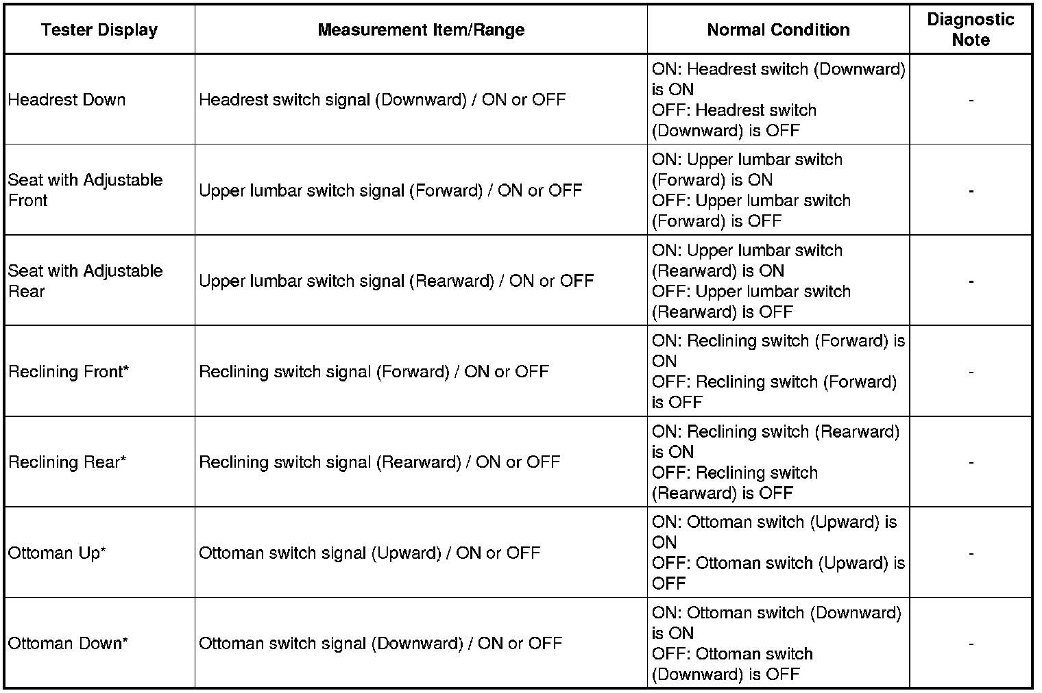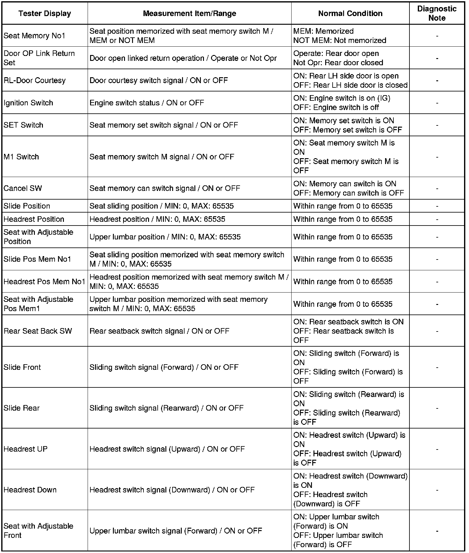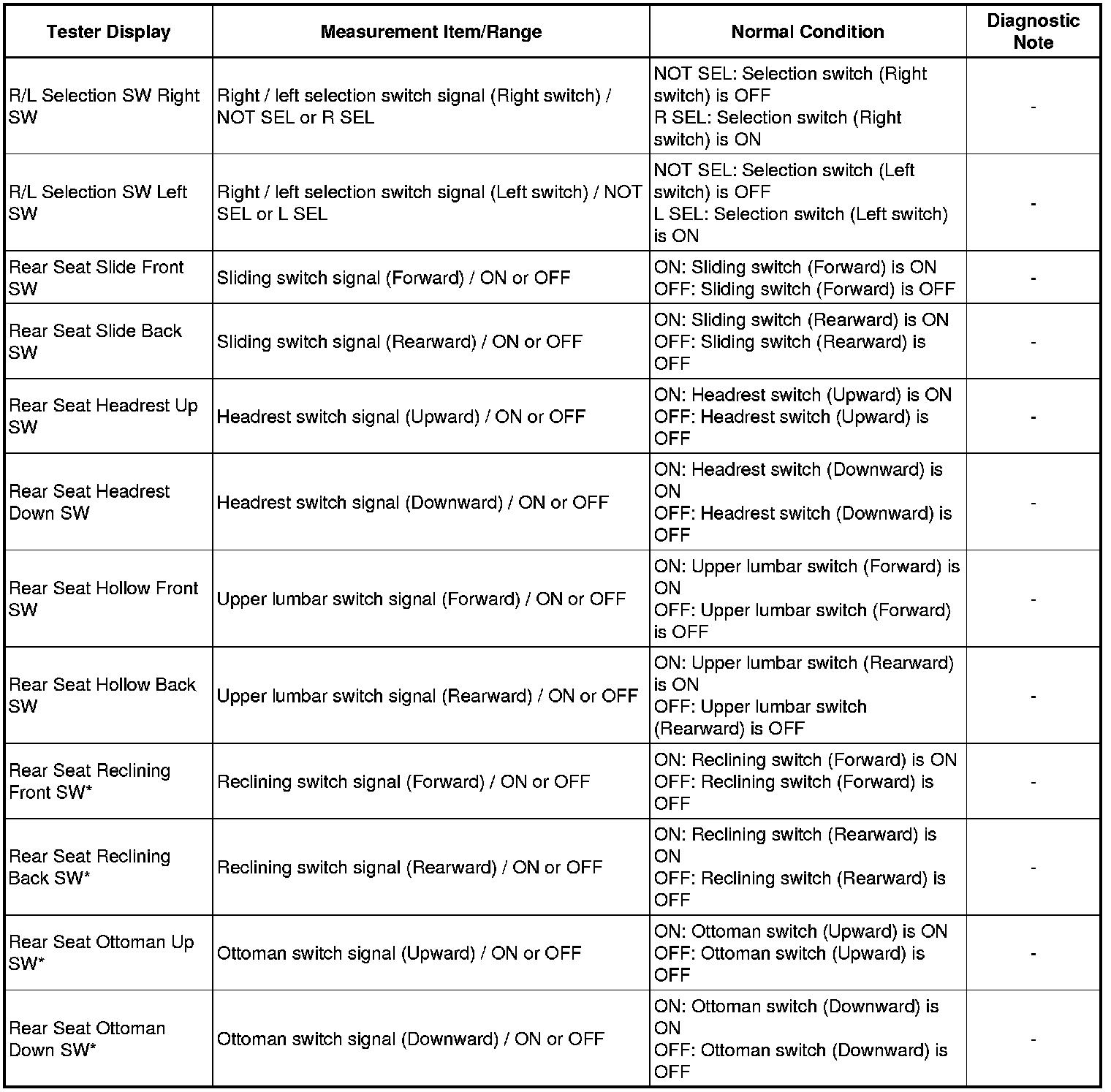 SEAT: REAR POWER SEAT CONTROL SYSTEM: DATA LIST / ACTIVE TEST