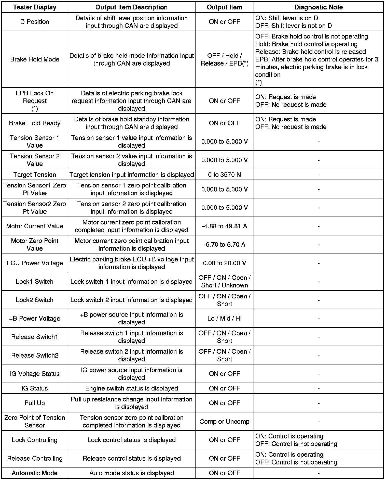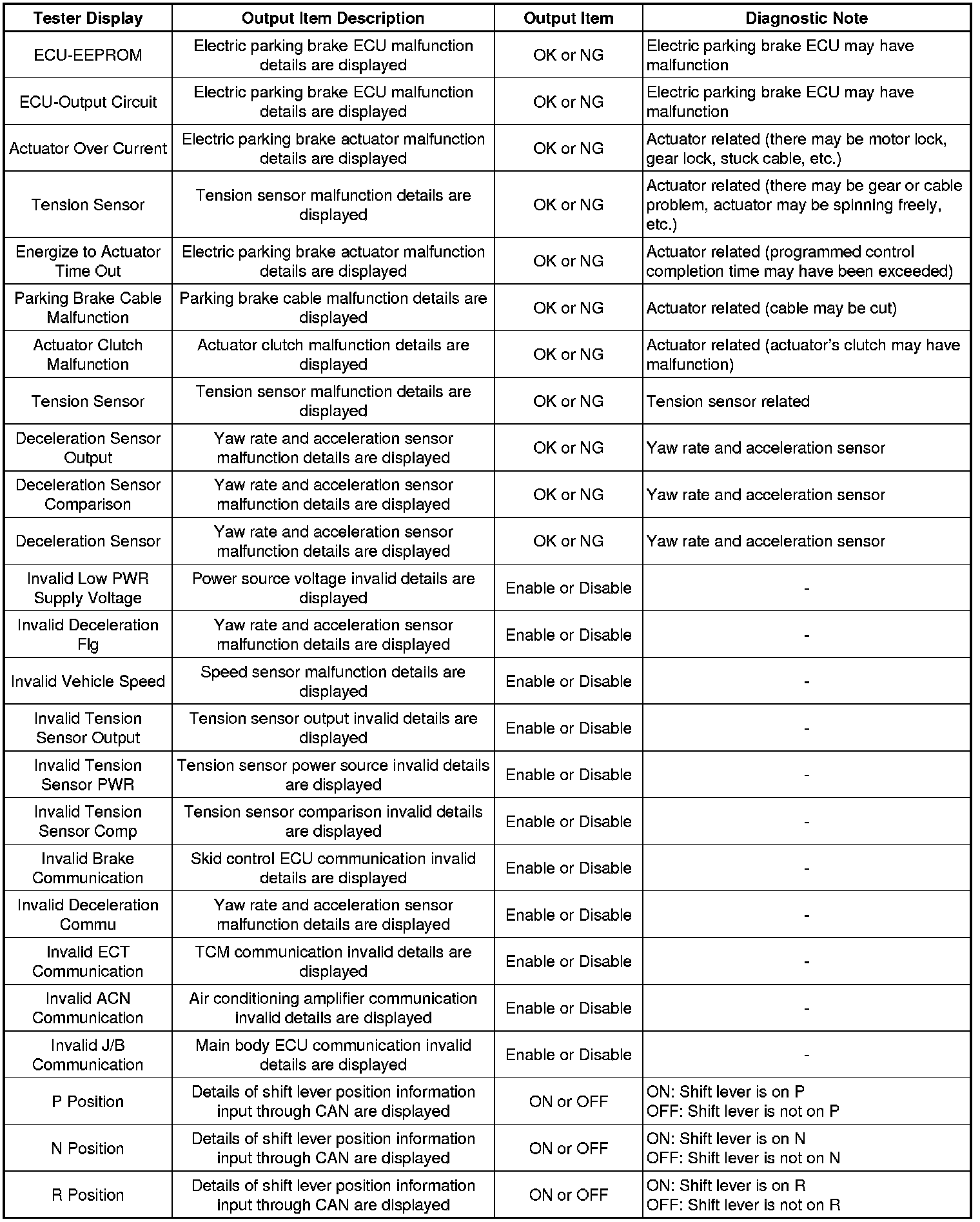 PARKING BRAKE: ELECTRIC PARKING BRAKE SYSTEM: FREEZE FRAME DATA