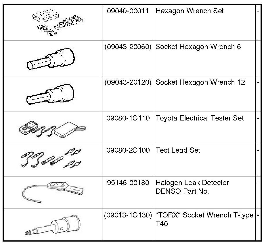 PREPARATION: AIR CONDITIONING: RECOMMENDED TOOLS