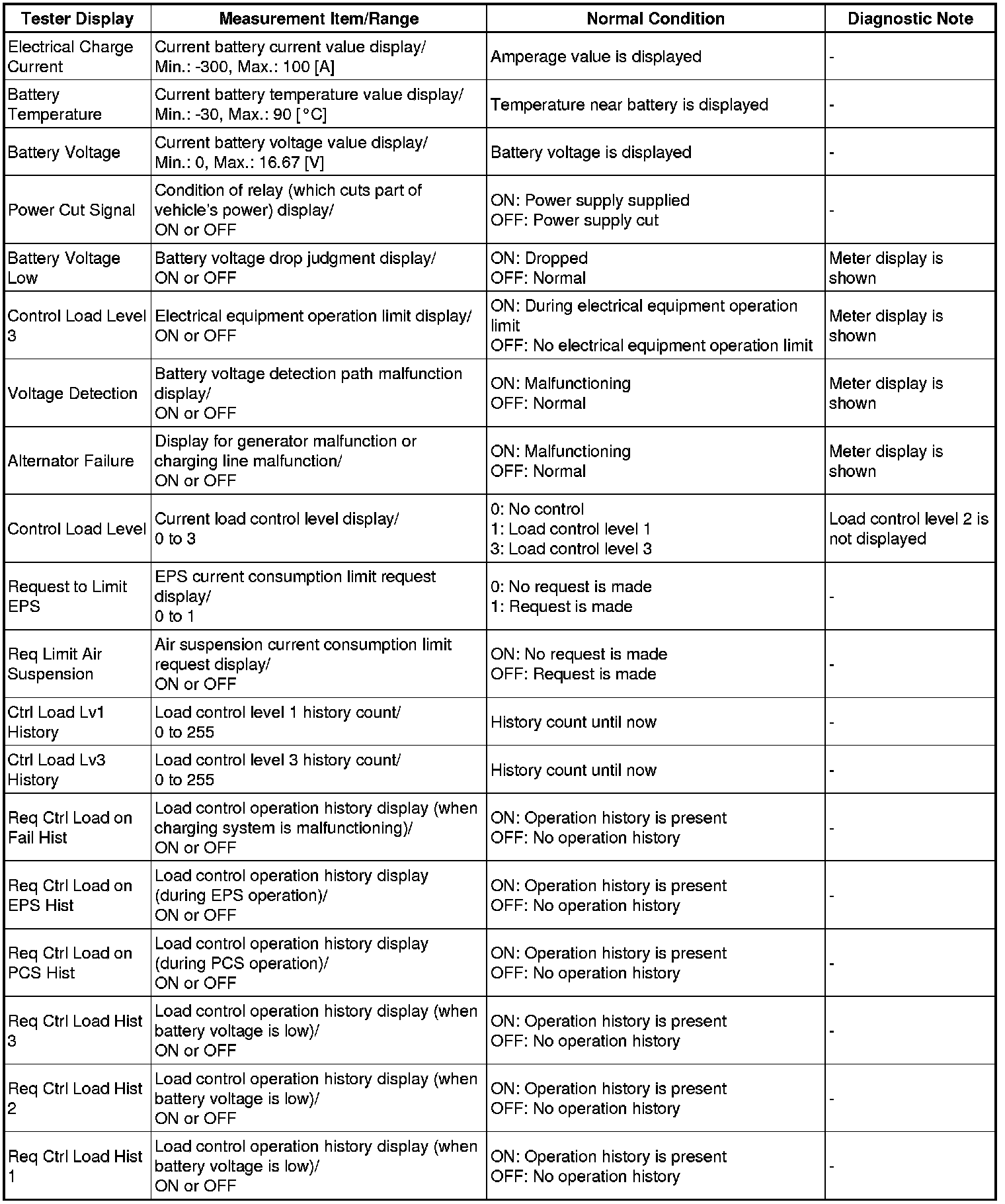 In the table below, the values listed under "Normal Condition" are reference values. Do not depend solely on these reference values when deciding whether a part is faulty or not.