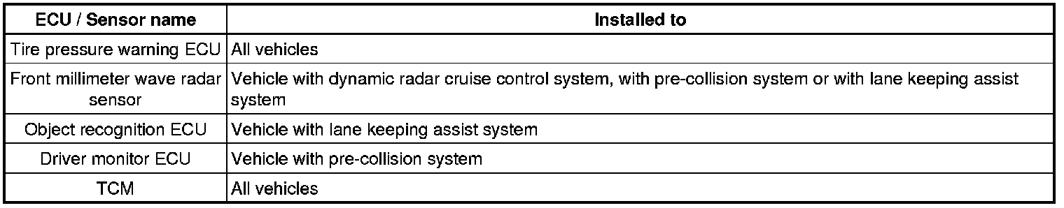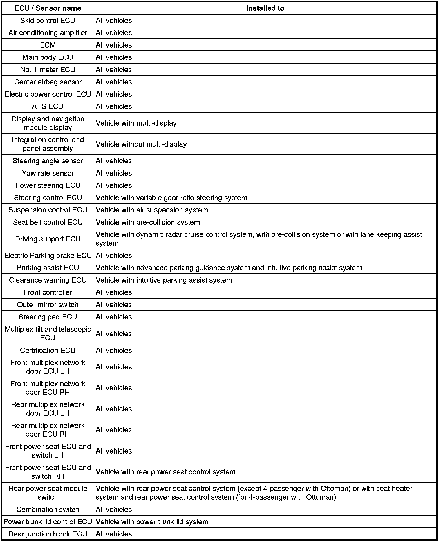 (a) System (ECUs and sensors) that use CAN communication vary depending on the vehicle's optional settings. Check which systems (ECUs and sensors) are installed on the vehicle.