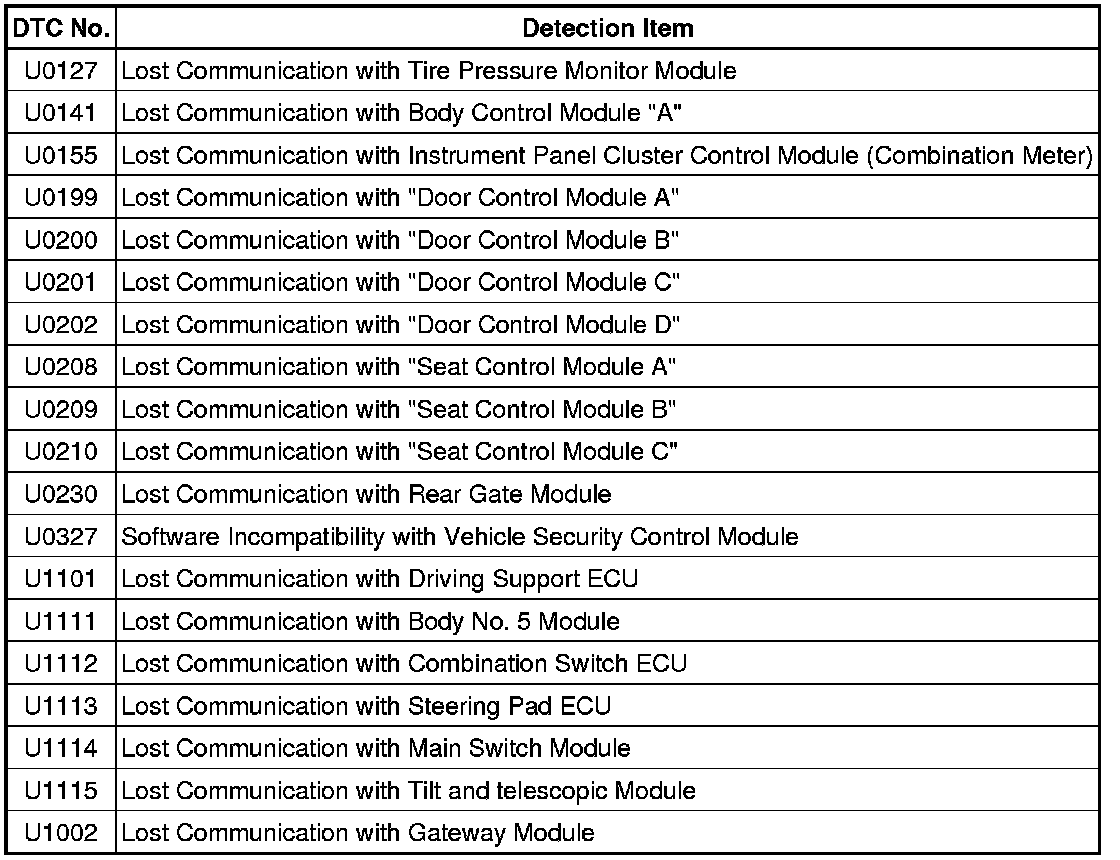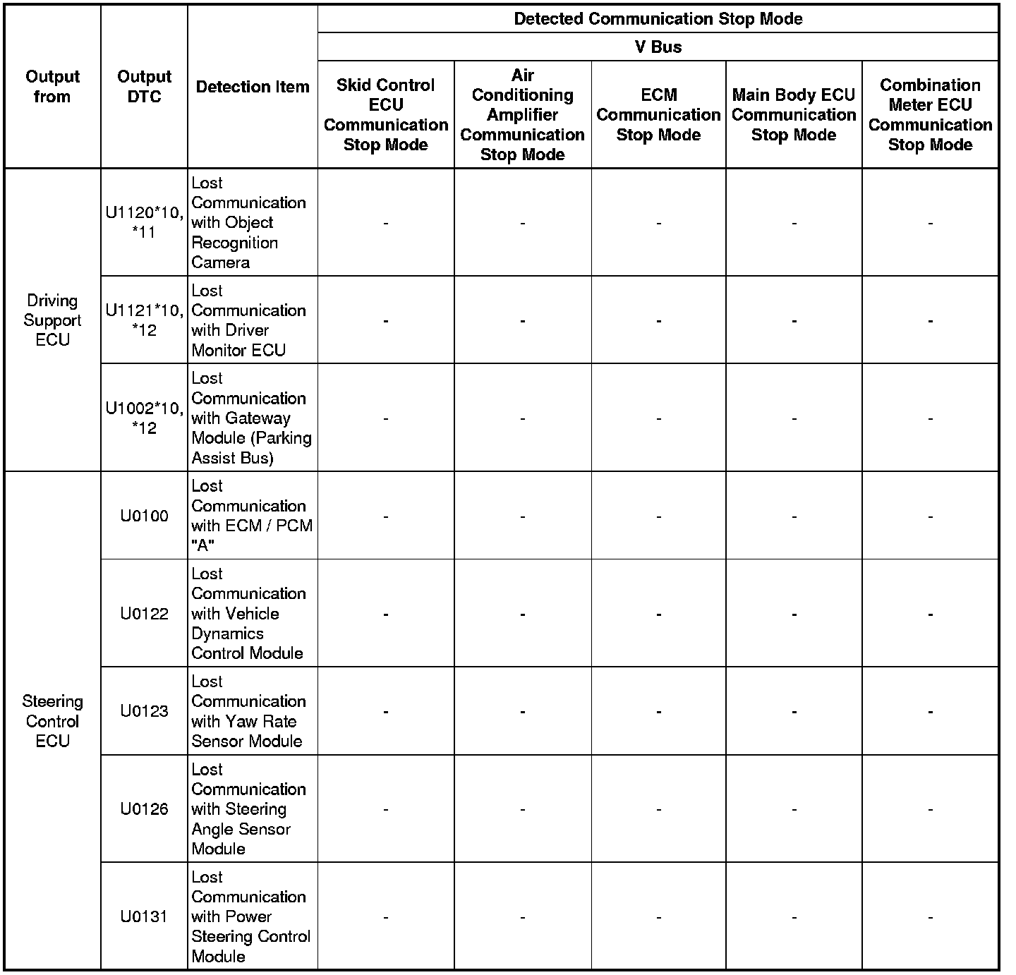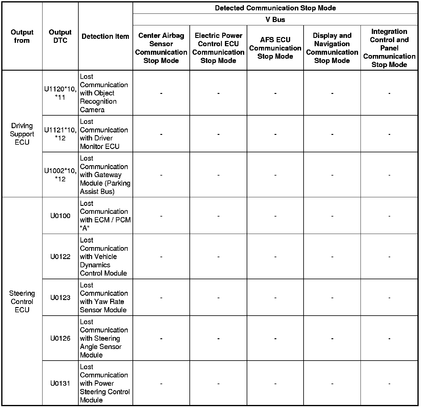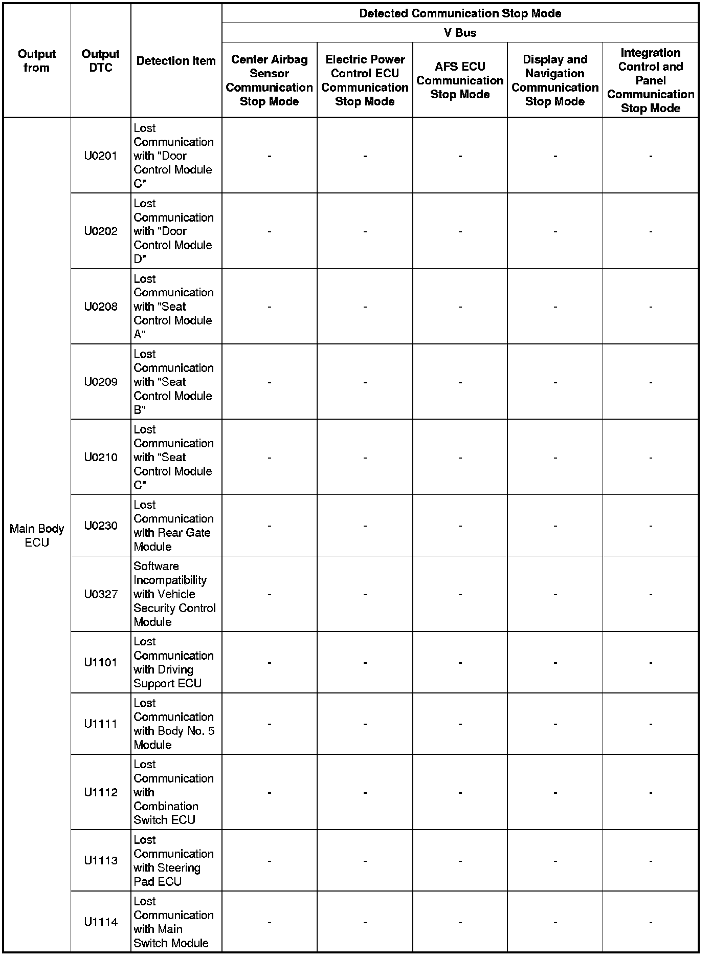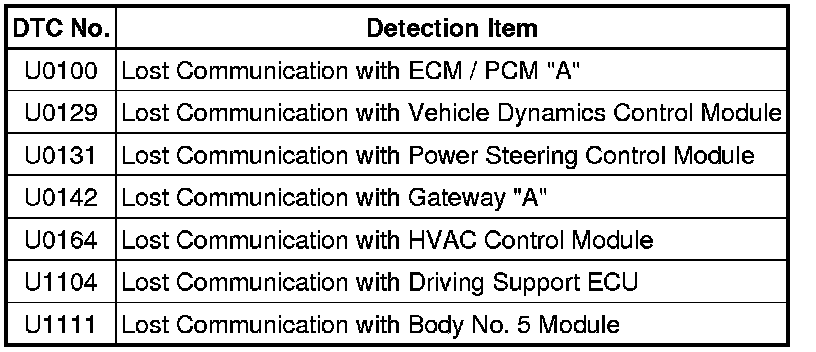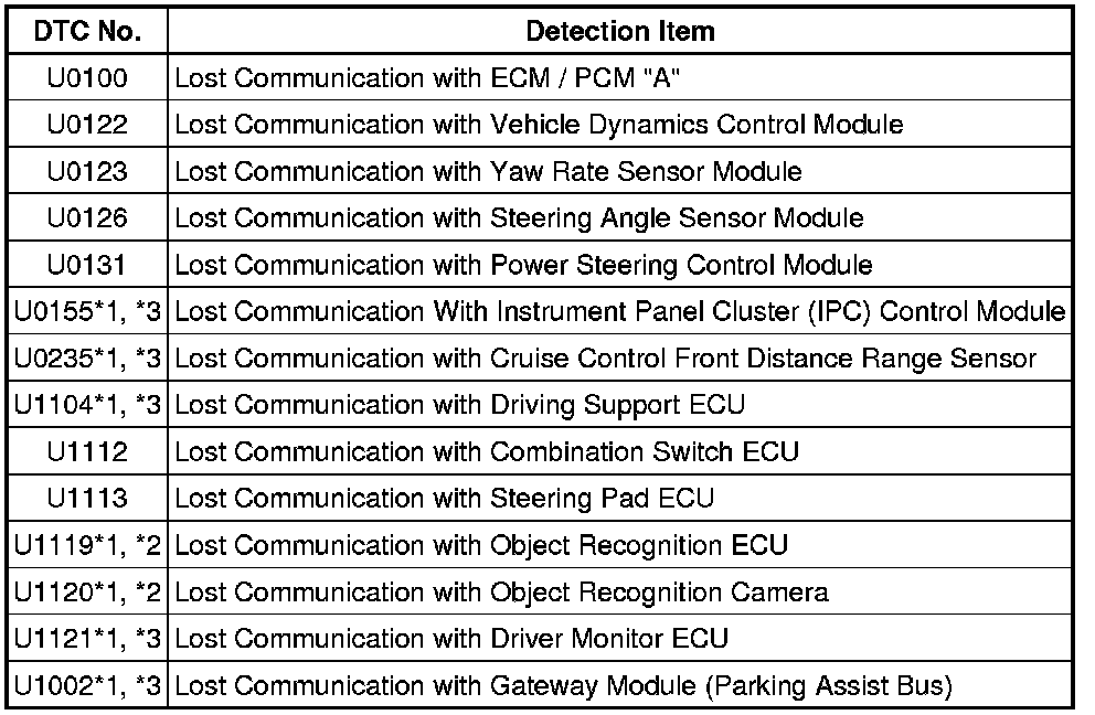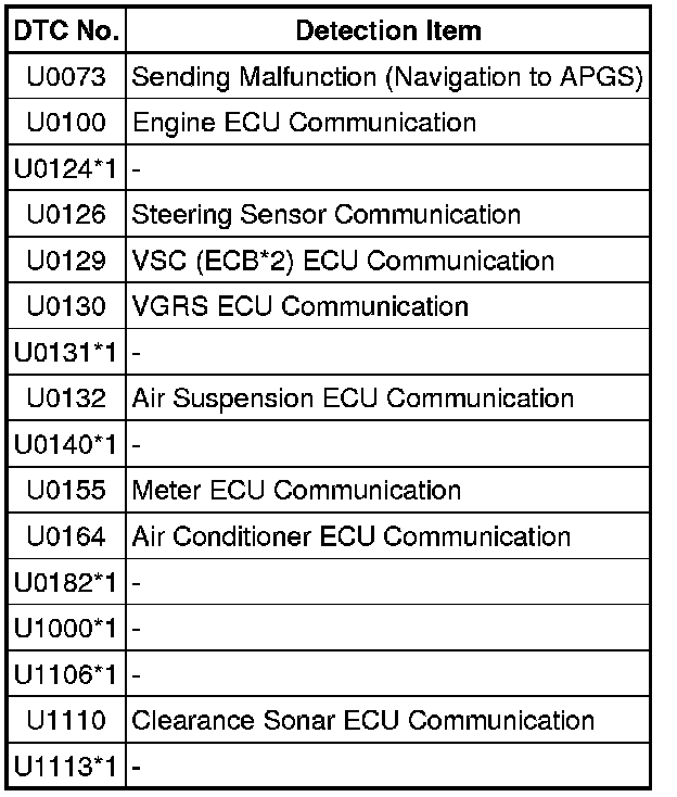 * *1: The DTC is not output to the intelligent tester. It is only output to the screen of the display and navigation module display.