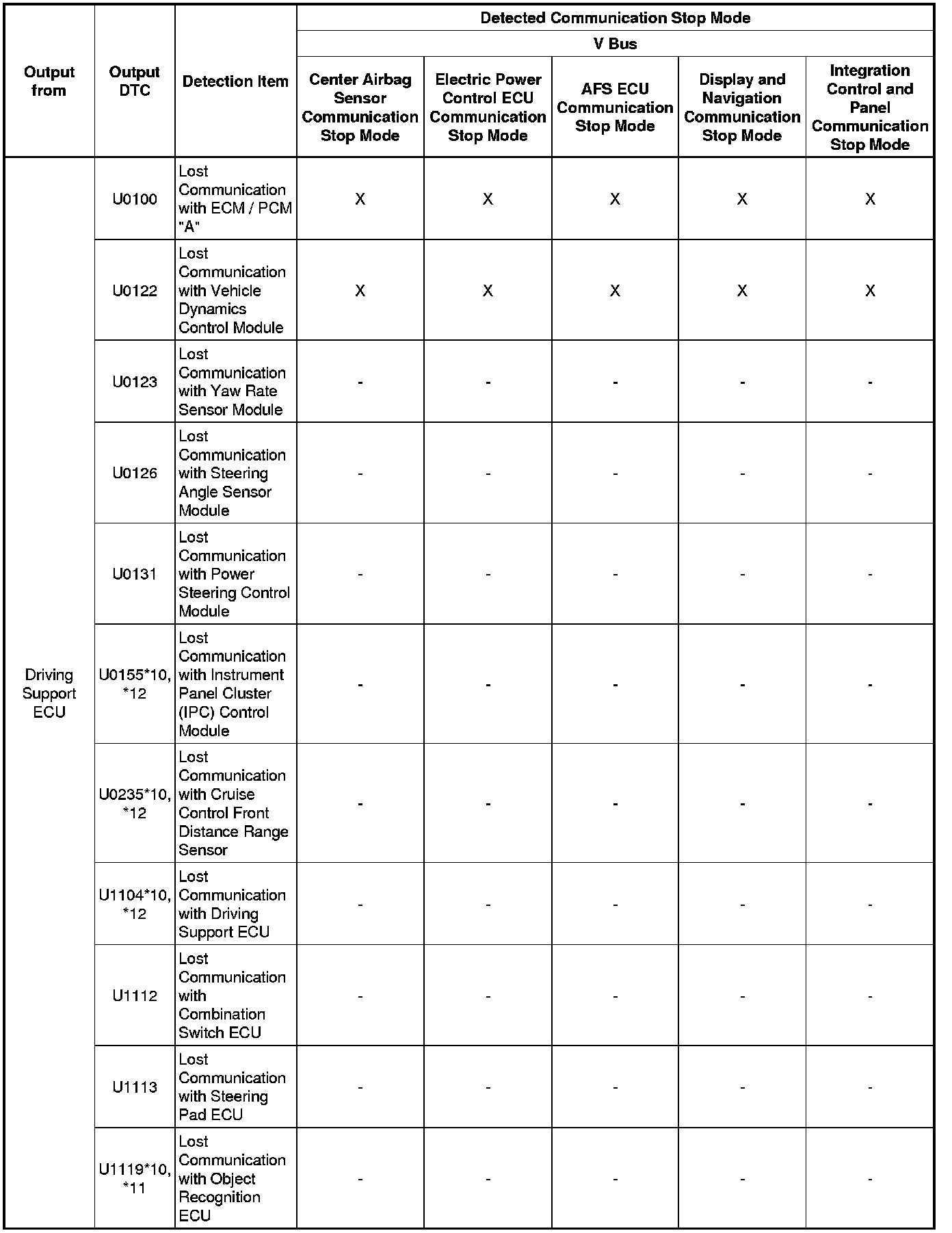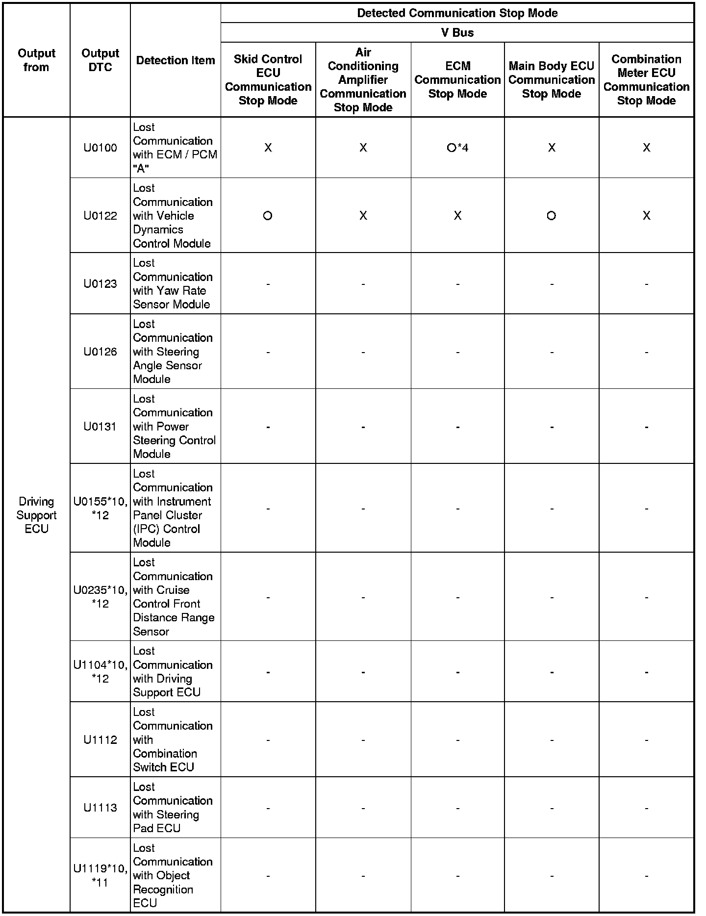 * *12: Refer to the Diagnostic Trouble Code Chart CAN Communication System.