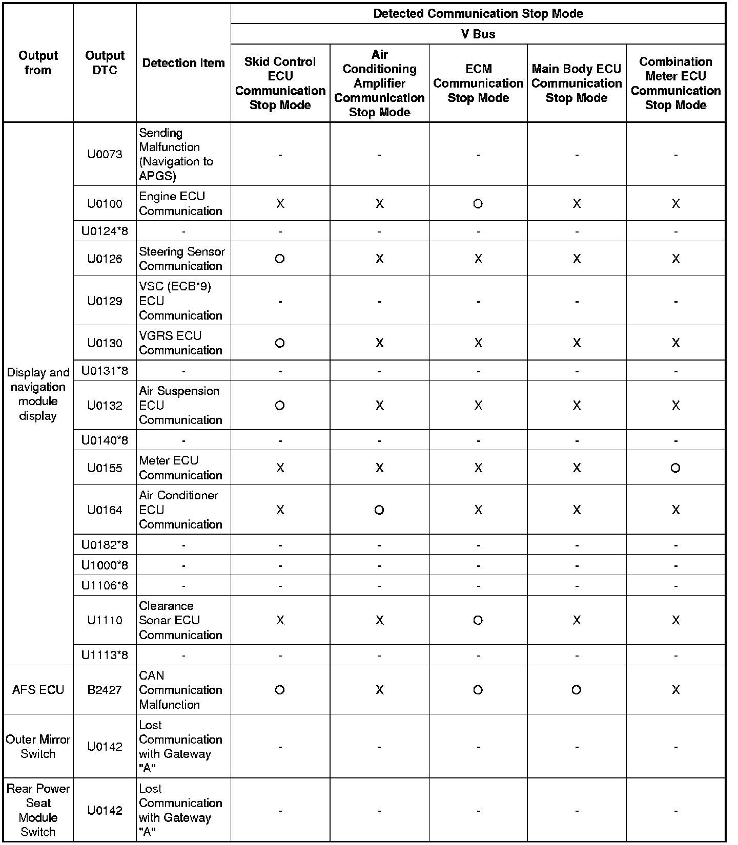 * *8: The DTC is not output to the Techstream. It is only output to the screen of the display and navigation module display.