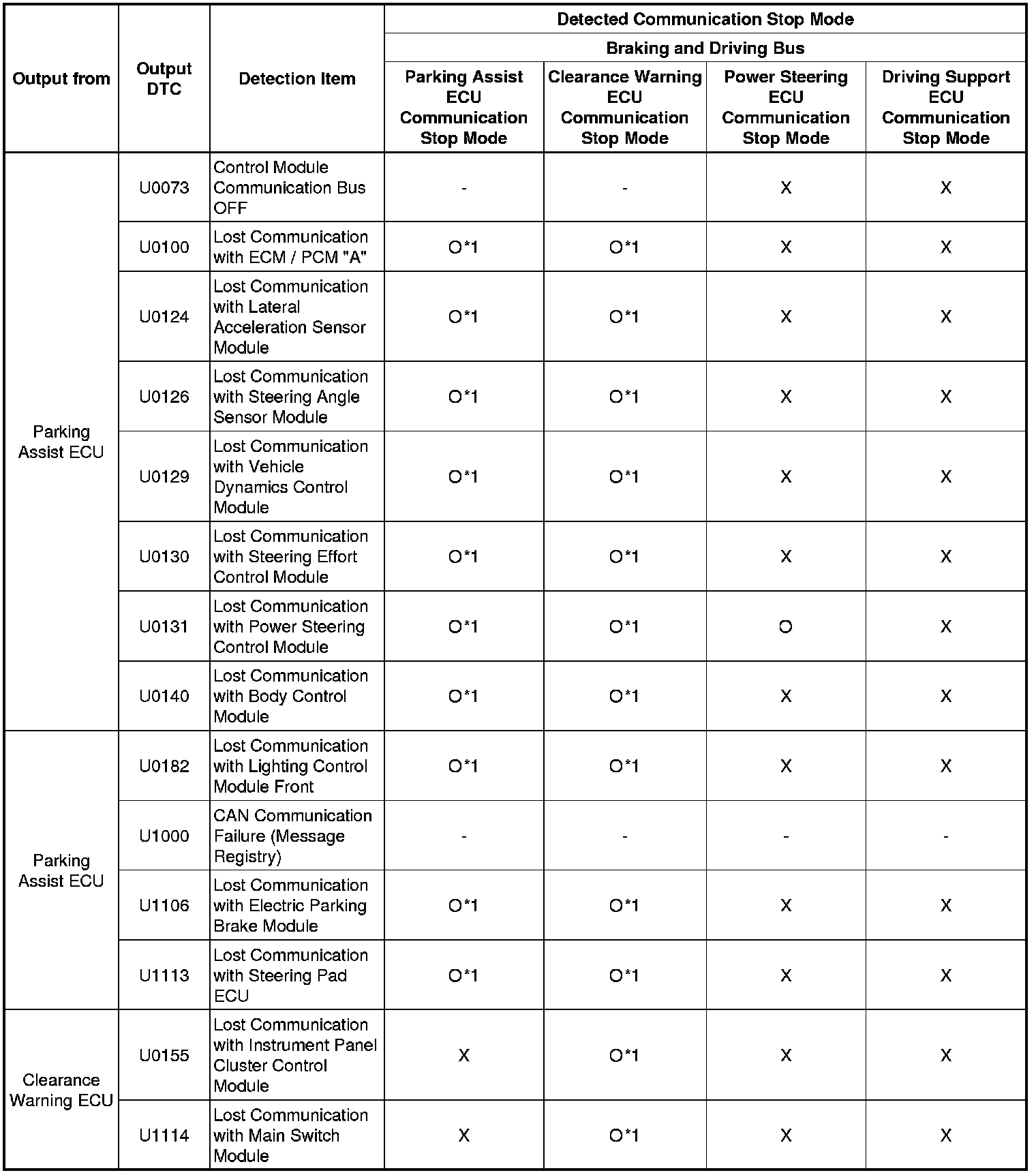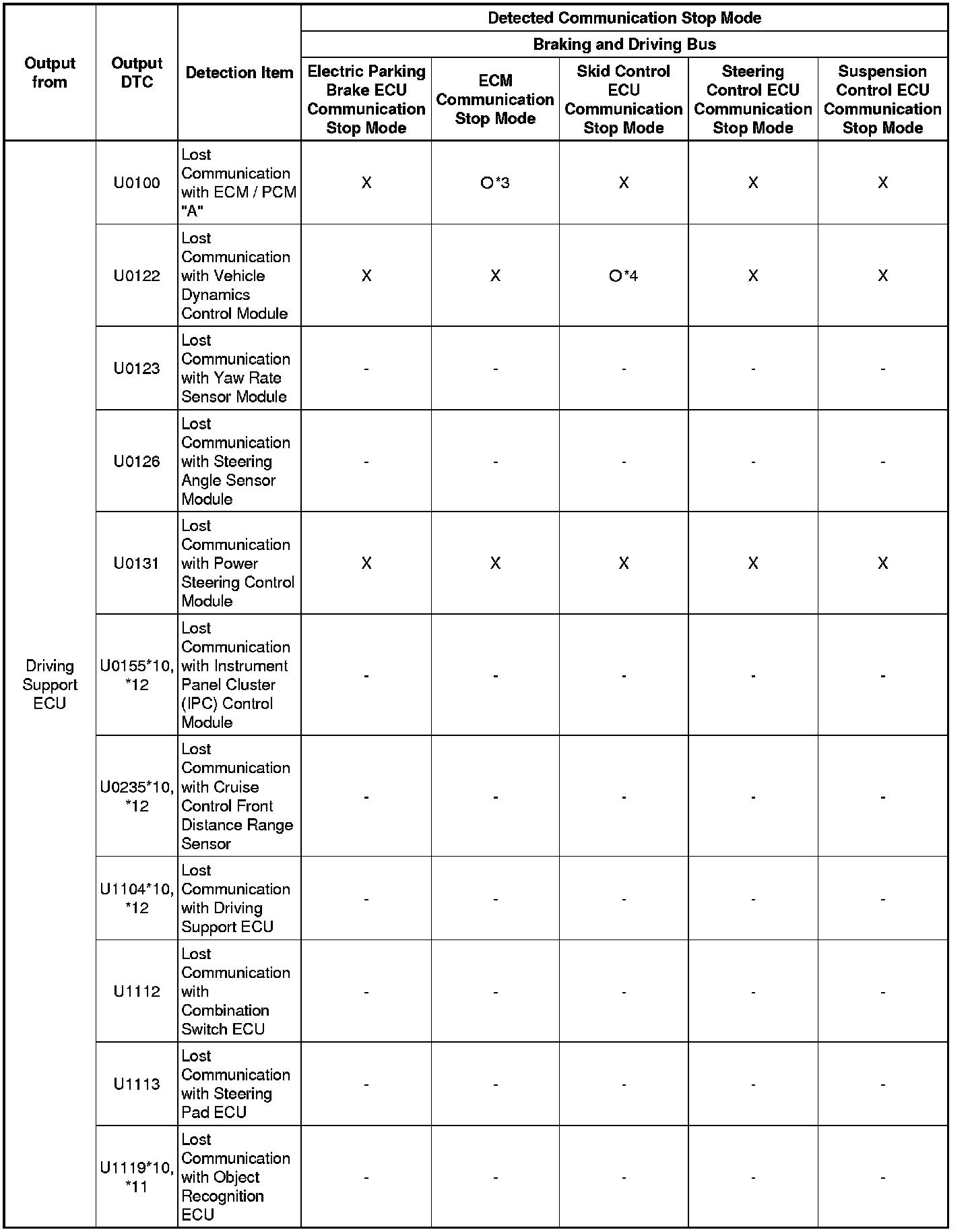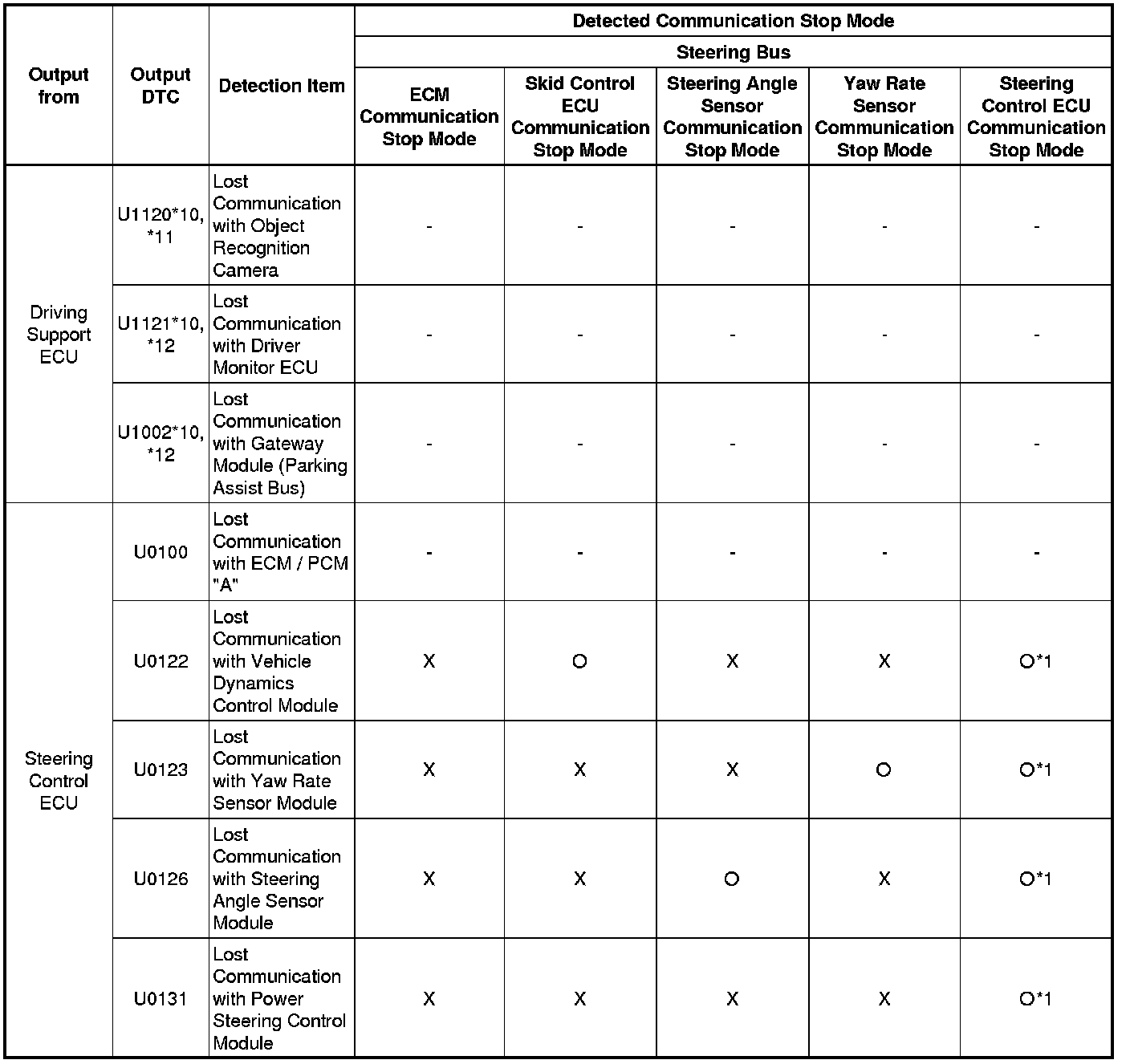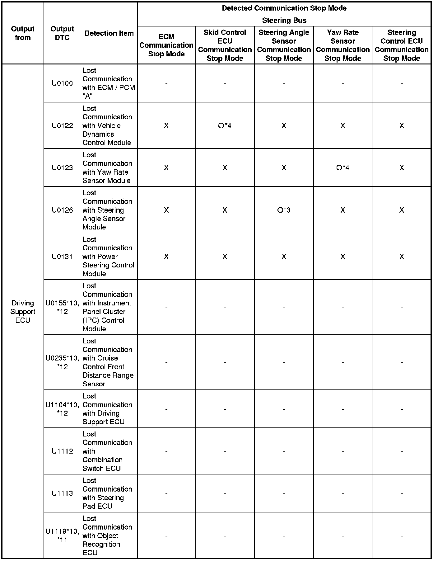 * *6: Only present DTCs output.