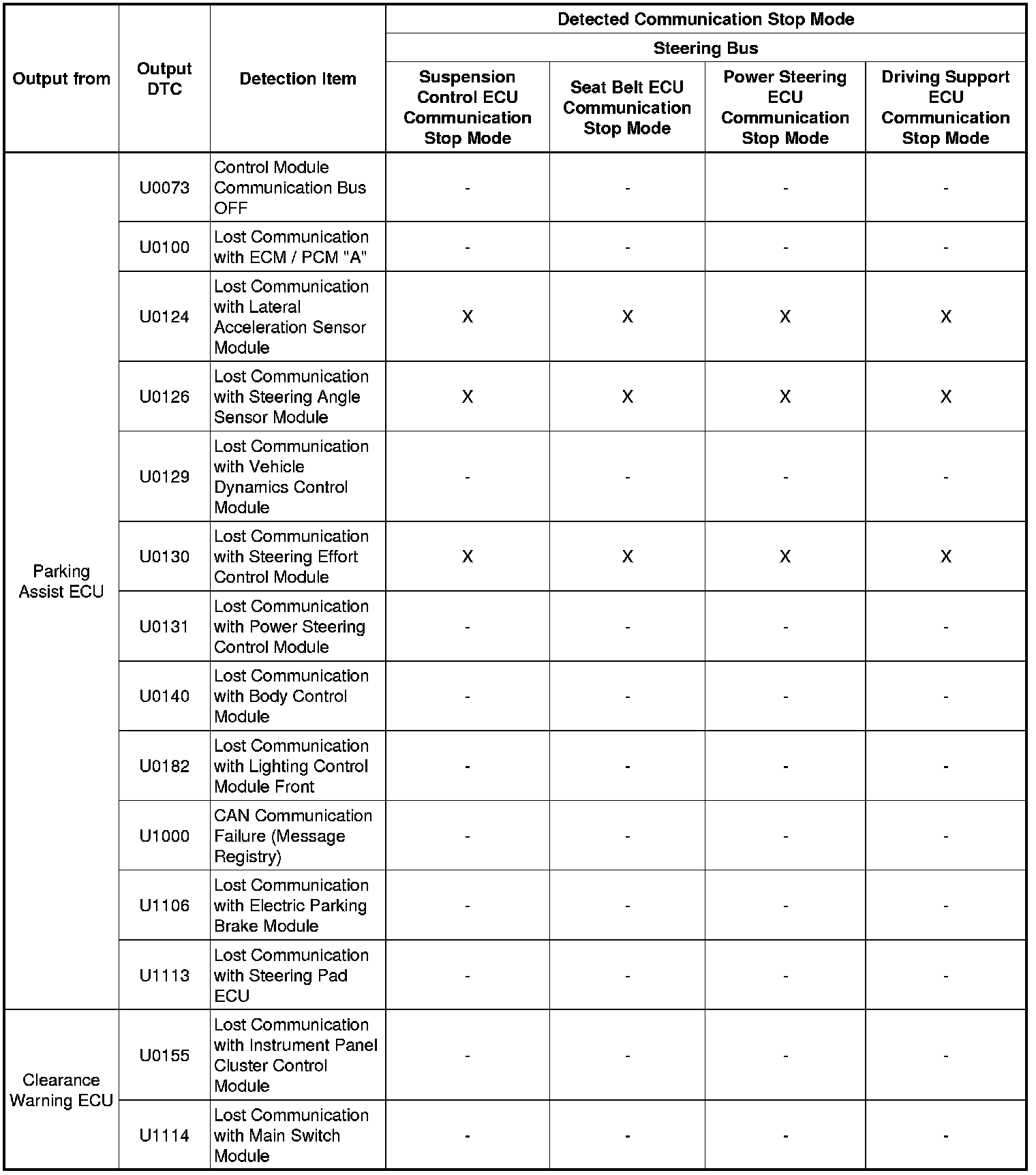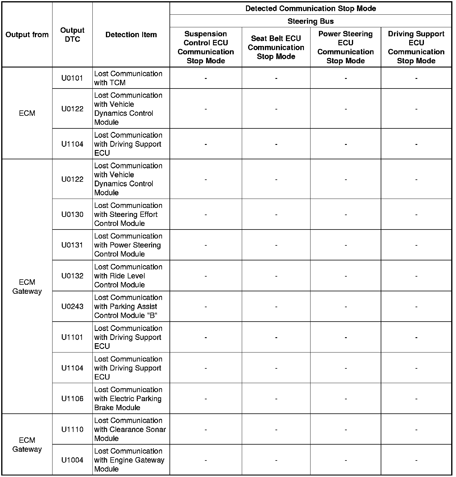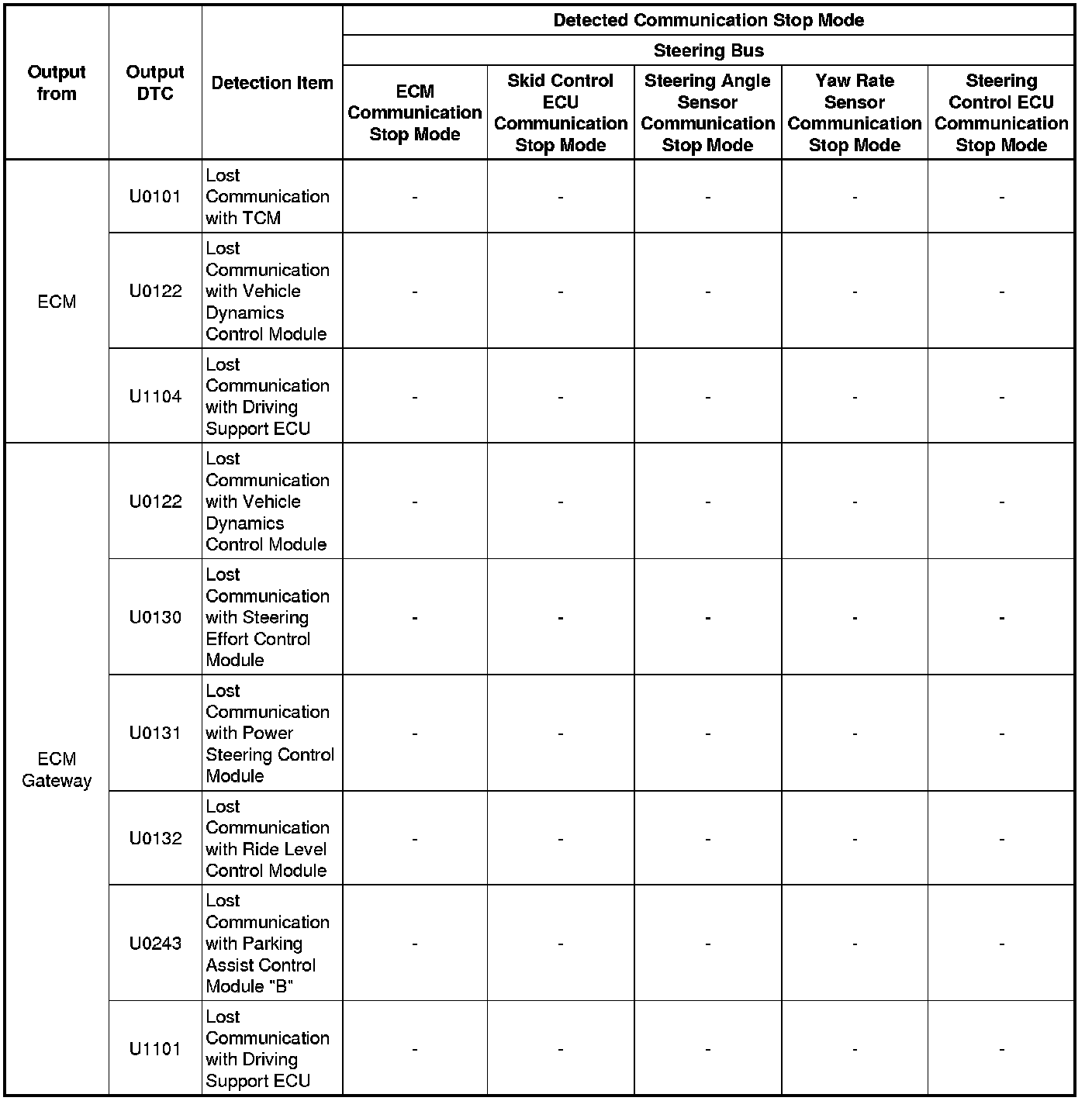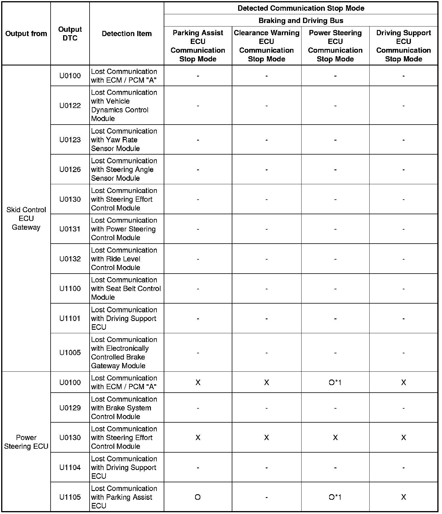 * *6: Only present DTCs output.