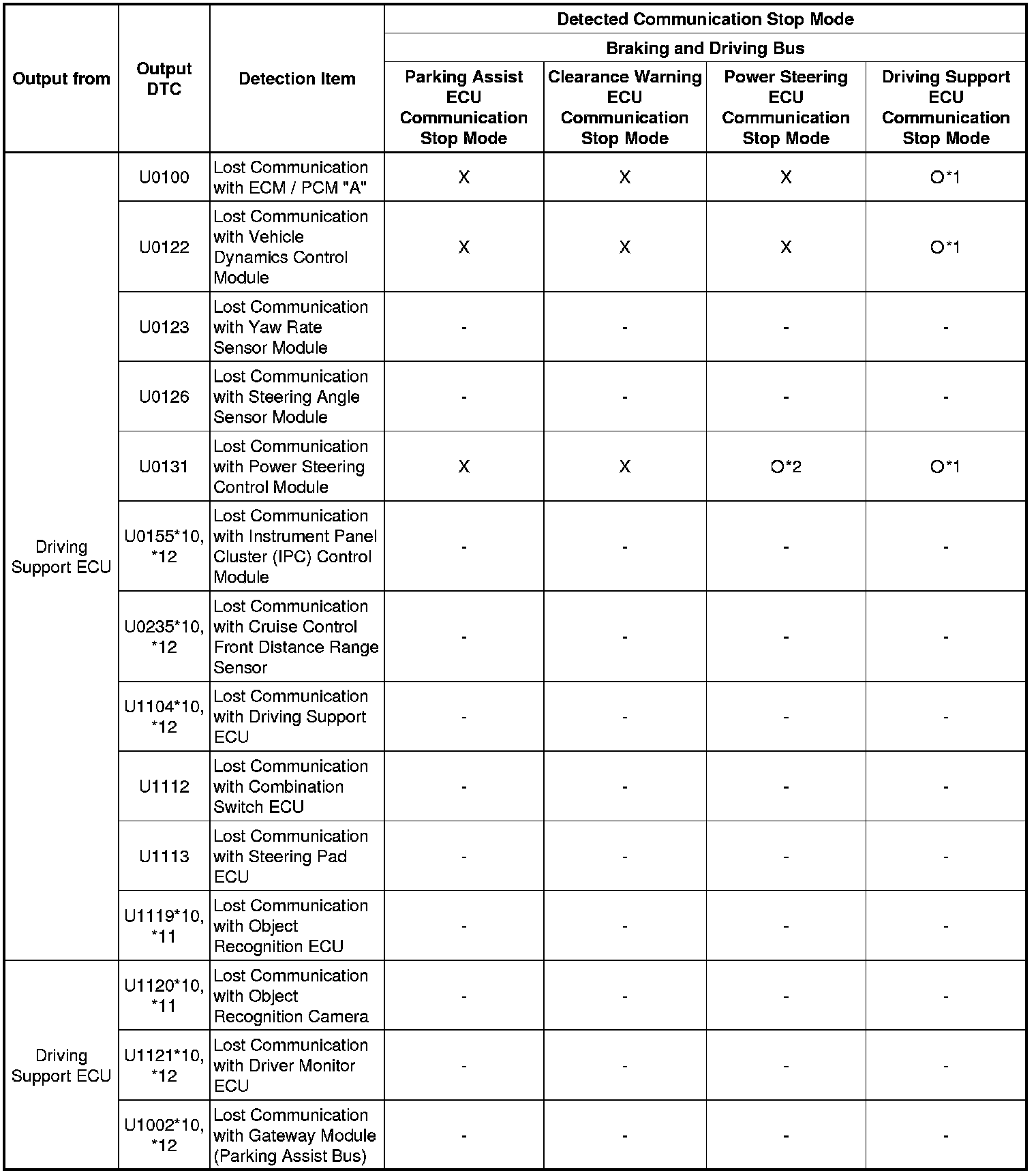 * *12: Refer to the Diagnostic Trouble Code Chart CAN Communication System.