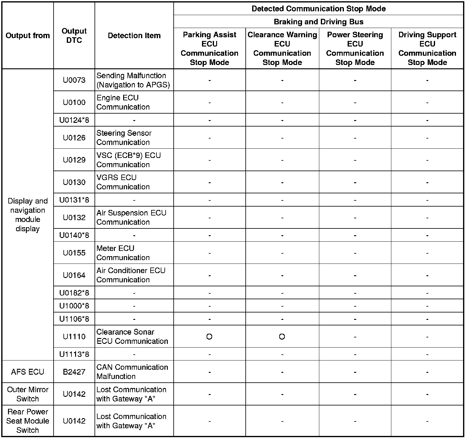 * *8: The DTC is not output to the Techstream. It is only output to the screen of the display and navigation module display.