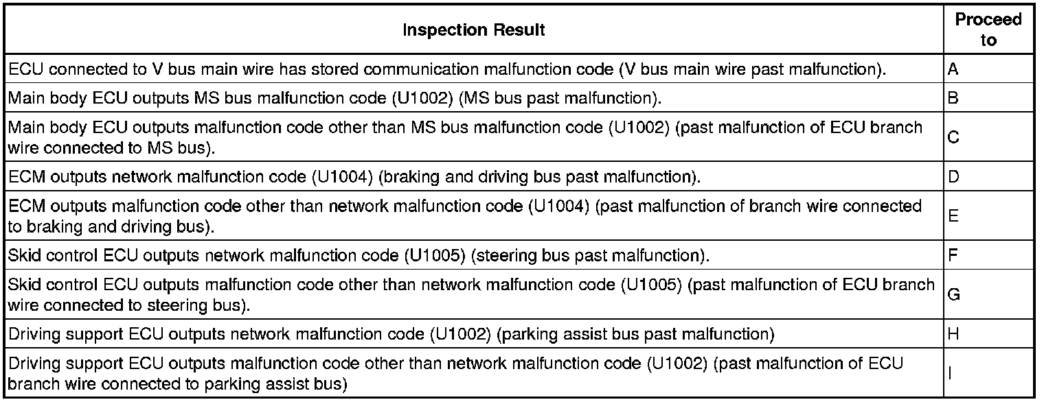 * For V bus main wire malfunctions, related ECUs are also detected. Therefore, determine the malfunctioning area based on all of the DTCs that are output.