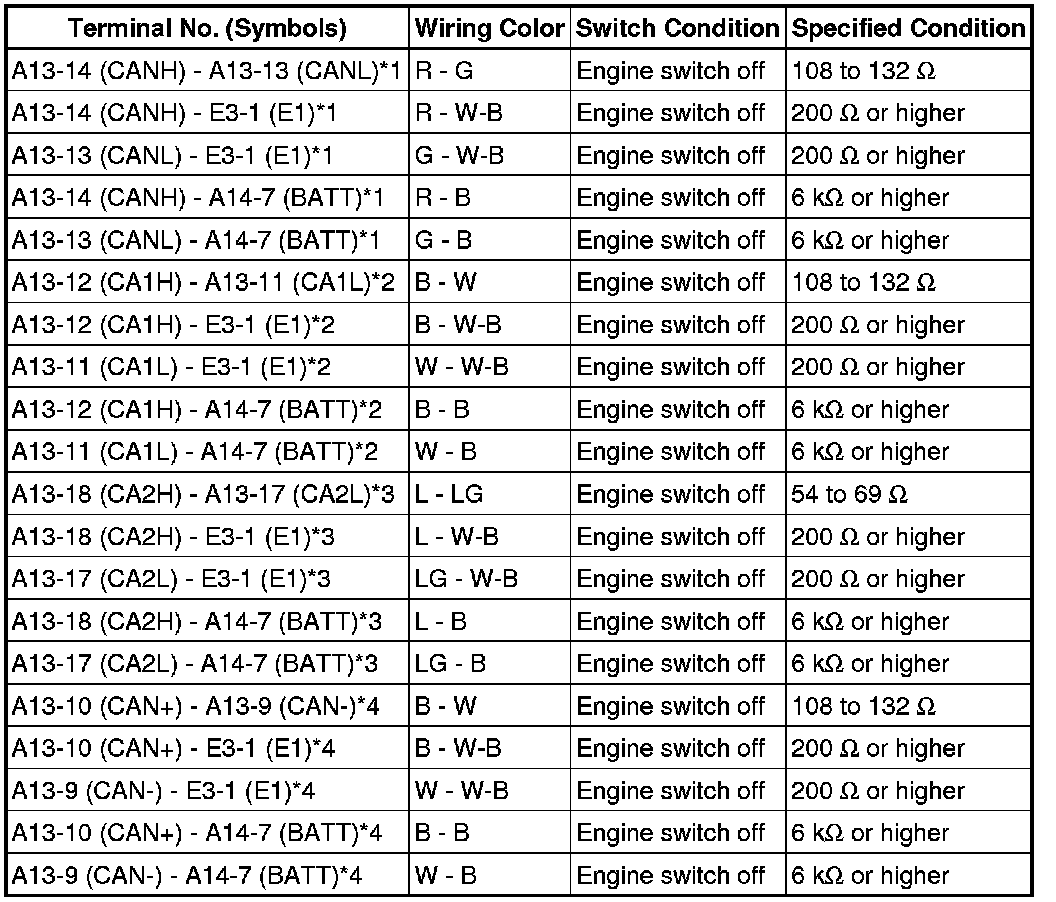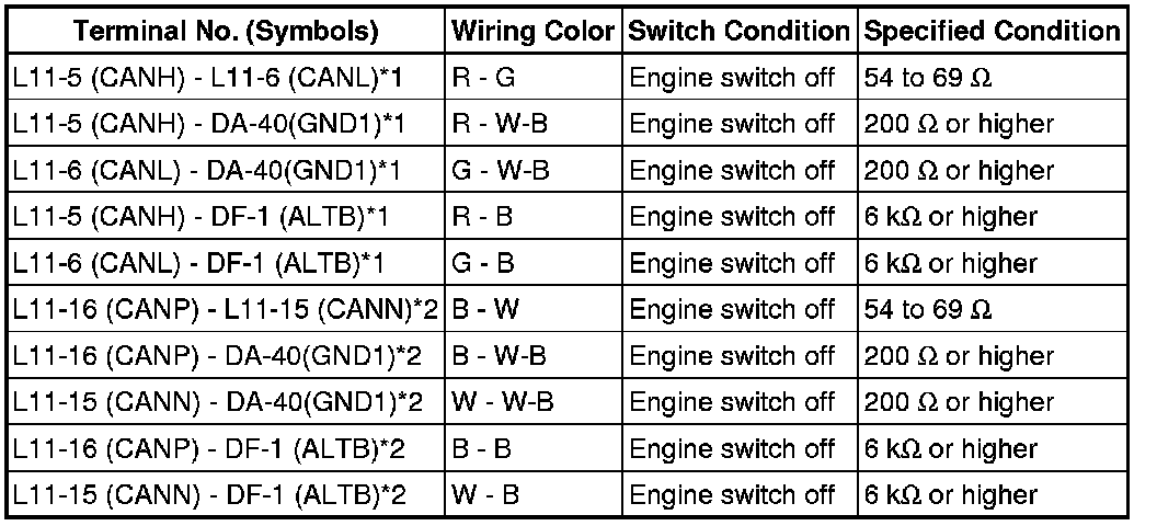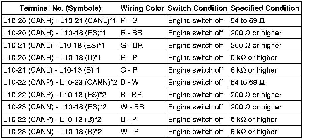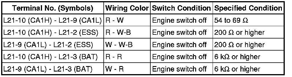 * Before measuring the resistance, leave the vehicle for at least 1 minute and do not operate the engine switch, any switches or doors. If doors need to be opened in order to check connectors, open the doors and leave them open.