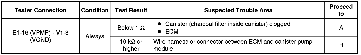 B -- CHECK HARNESS AND CONNECTOR (CANISTER PUMP MODULE - ECM)