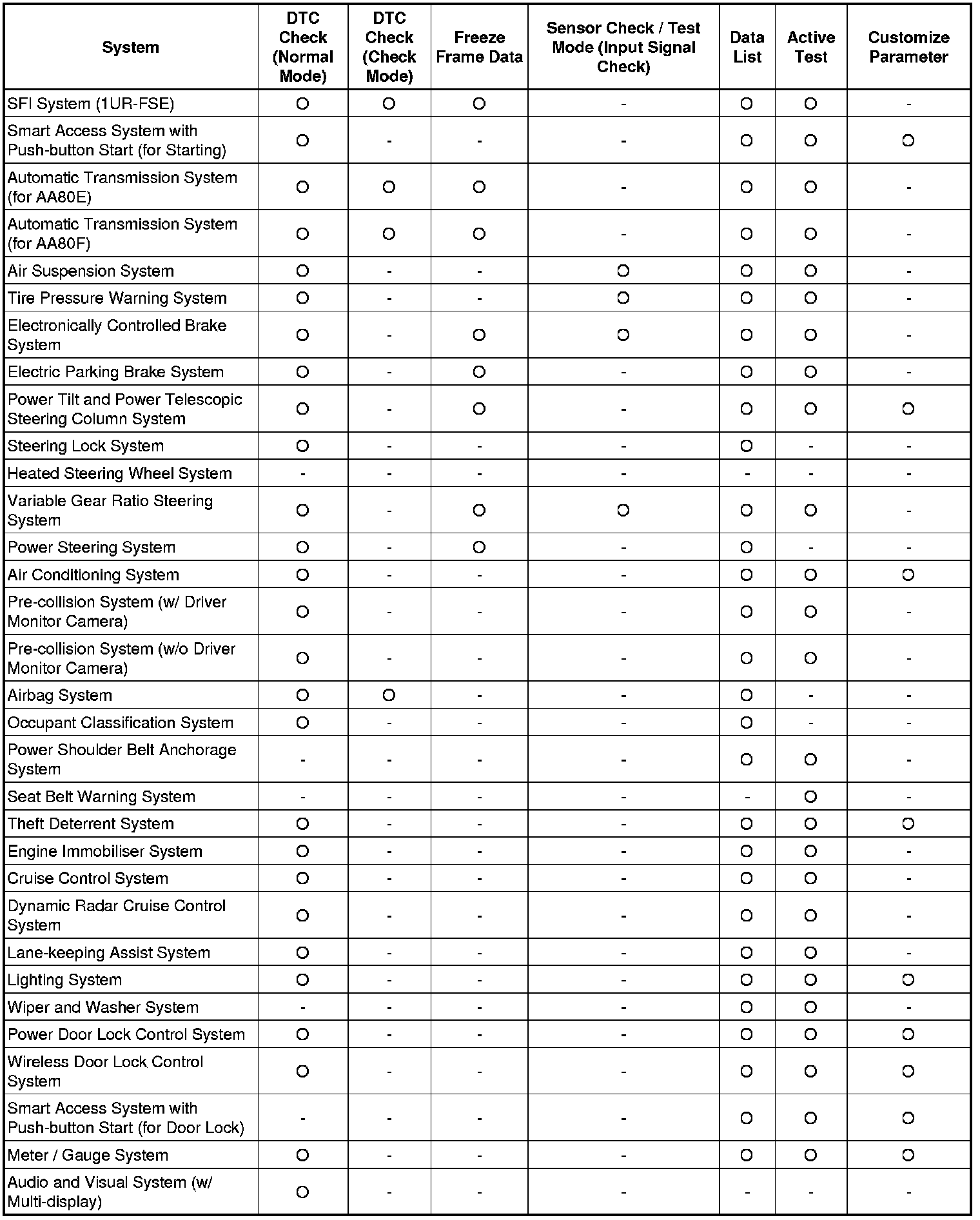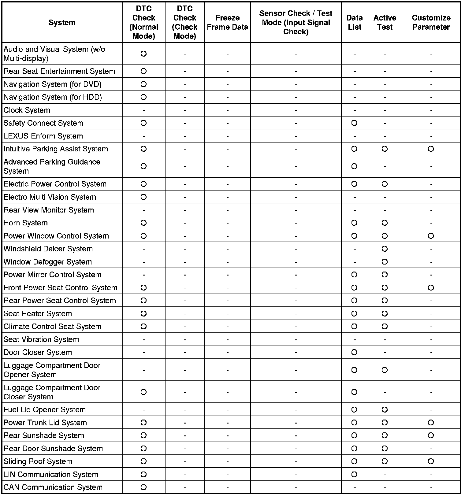 By using these functions, the problem areas can be narrowed down and troubleshooting is more effective. Diagnostic functions are incorporated in the following systems in the LEXUS LS460L / LS460.