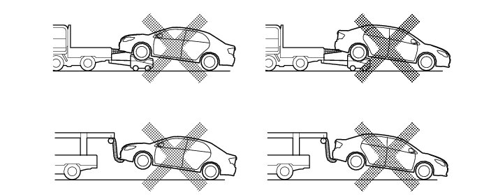 (d) The towing methods shown below are dangerous and can damage the vehicle, so do not use them.
