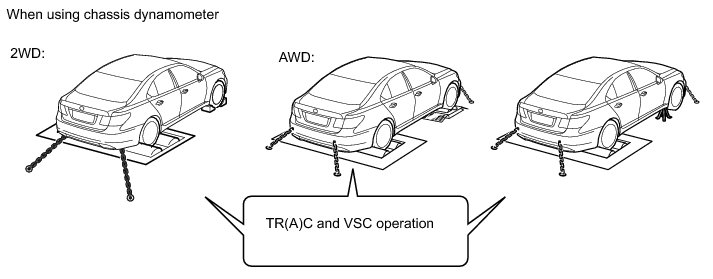 * If the vehicle is tested in normal mode on the drum tester, the traction control and VSC system may cause the vehicle to jump out from the drum tester.