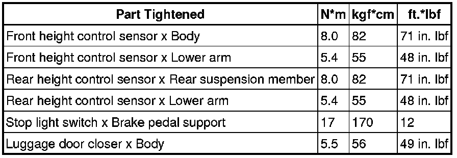 SERVICE SPECIFICATIONS: LIGHTING: TORQUE SPECIFICATIONS