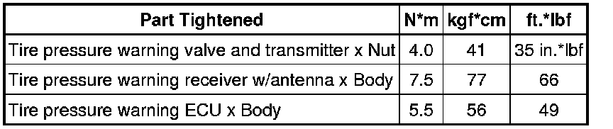 SERVICE SPECIFICATIONS: TIRE AND WHEEL: TORQUE SPECIFICATIONS