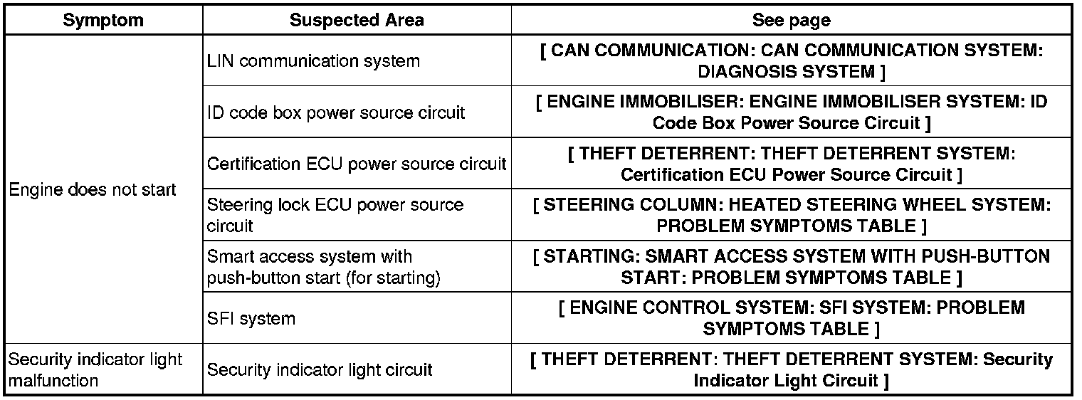 ENGINE IMMOBILISER: ENGINE IMMOBILISER SYSTEM: PROBLEM SYMPTOMS TABLE