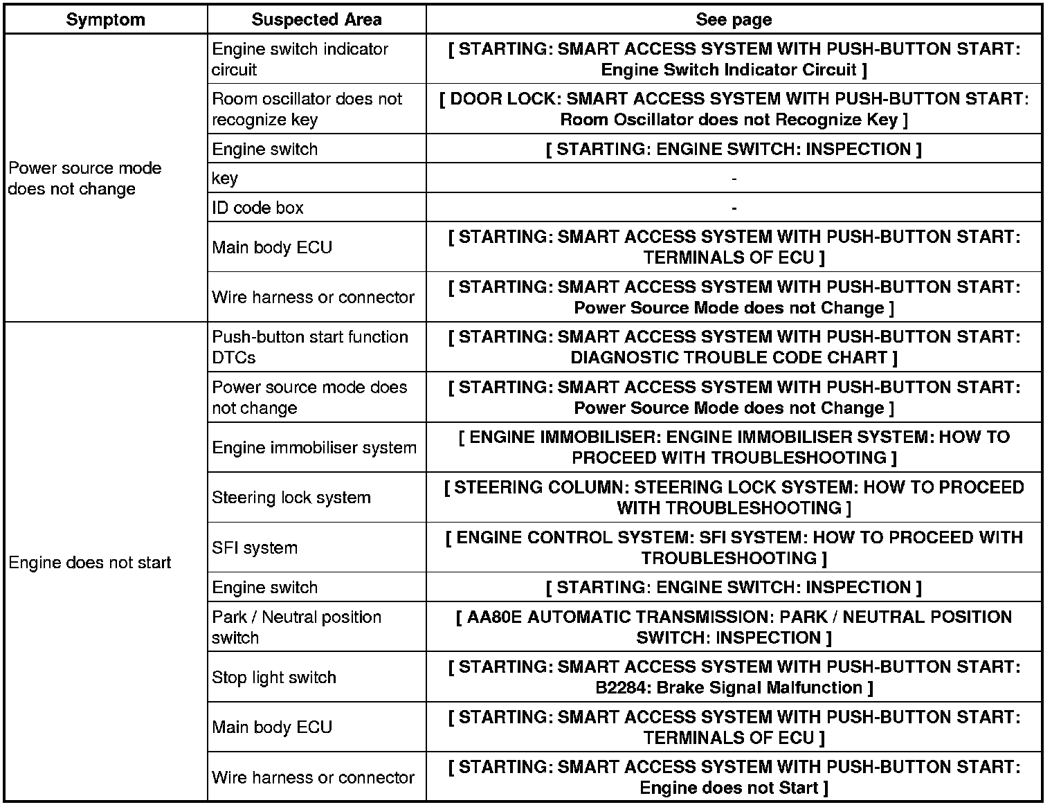 1UR-FSE STARTING: SMART ACCESS SYSTEM WITH PUSH-BUTTON START: PROBLEM SYMPTOMS TABLE
