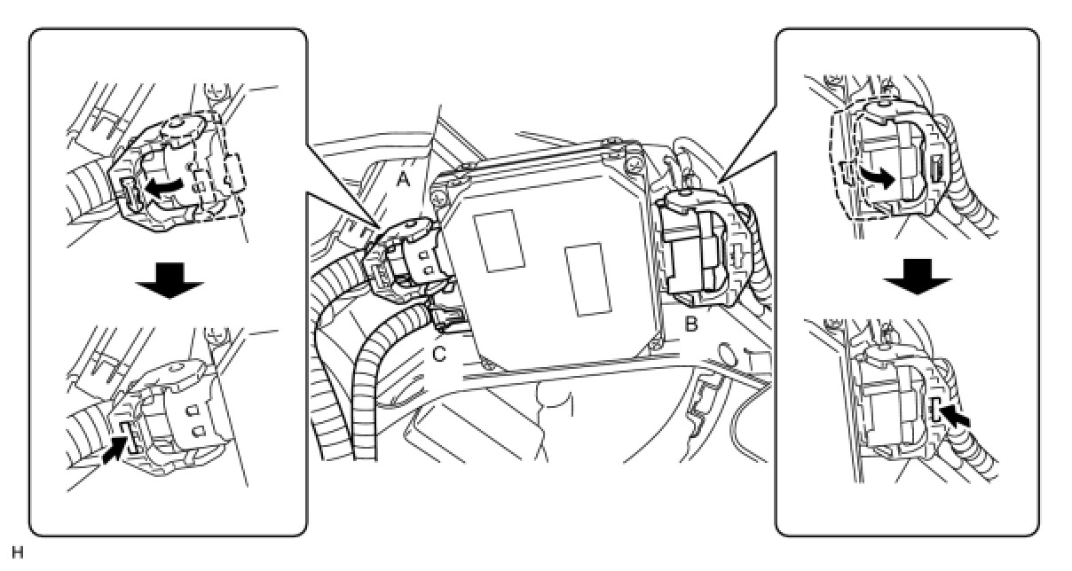 (c) Connect the 2 power steering ECU connectors A and B and securely lock the connectors.