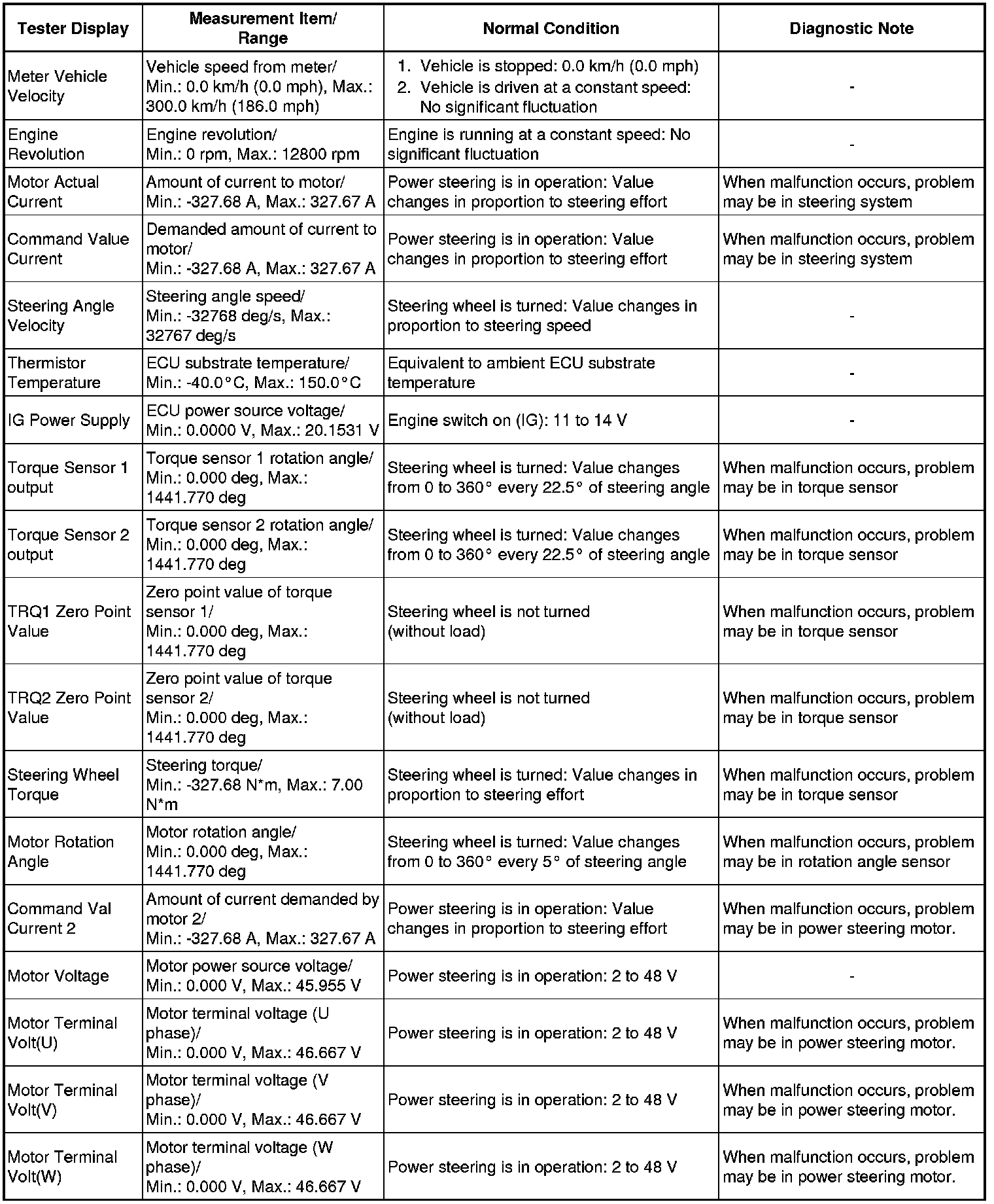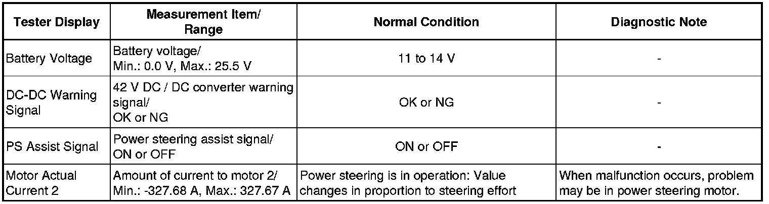POWER STEERING: POWER STEERING SYSTEM: FREEZE FRAME DATA